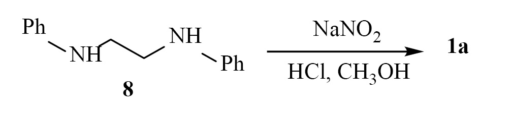 Для подтверждения строения соединения 1а, кроме анализа спектральных данных, нами осуществлен его встречный синтез С-нитрозированием N1,N2-дифенил-1,2-этандиамина (8) в среде метанола, насыщенного HCl (схема 4, способ Б). Данные электронной, ЯМР 1Н и 13С спектроскопии соединения 1а, синтезированного аминированием и полученного встречным синтезом, идентичны.
