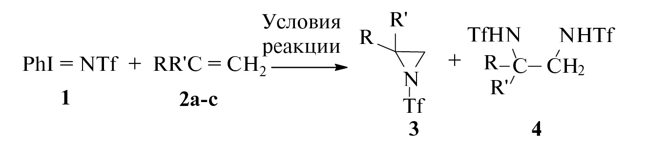 Однако, реакции азиридинирования в присутствии фенил-N-(трифлил)имино-λ3-йодана (PhI=NTf) изучены [22] недостаточно.