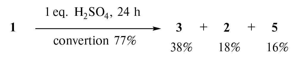 ОкислениеR-(+)-камфоры (1). К перемешиваемой при 0°C смеси 7.8 мл (14.4 г, 146 ммоль) конц. H2SO4 и 2.6 мл (2.6 г, 144 ммоль) воды присыпали 5.30 г (19.5 ммоль) K2S2O8, затем последовательно прибавляли 8.5 мл (8.5 г, 472 ммоль) воды и 3.00 г (19.5 ммоль) R-(+)-камфоры (1). Перемешивали при 0°C в течение 0.5 ч; при 20°С в течение 24 ч (эксперимент 1) или при 0°C в течение 0.5 ч; при 10°С в течение 15 ч (эксперимент 2), далее осторожно выливали в 4 мл охлажденной воды, экстрагировали CH2Cl2 (3 × 100 мл), последовательно промывали насыщенными растворами NaHCO3, Na2S2O3 и NaCl. Сушили MgSO4 и упаривали.