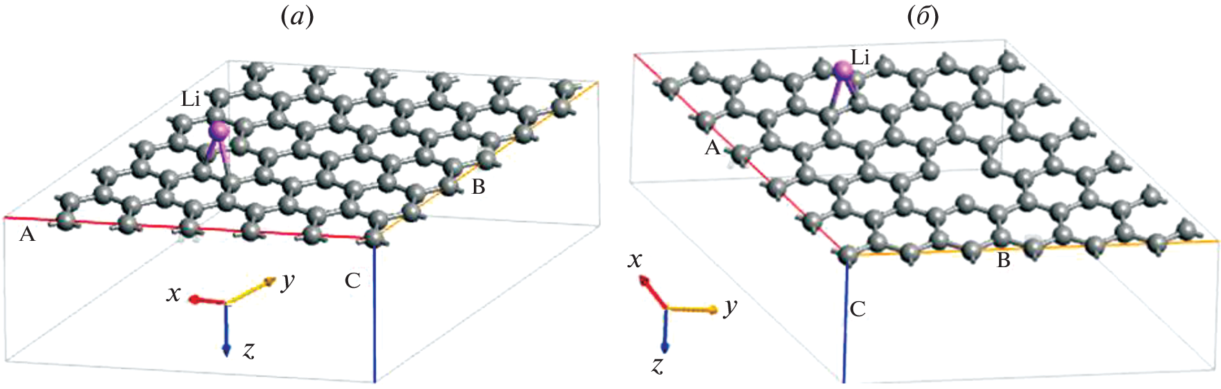 - Zhong K., Hu R., Xu G., Yang Y., Zhang J.-M., Huang Z. Adsorption and ultrafast diffusion of lithium in bilayer graphene: Ab initio and kinetic Monte Carlo simulation study // Physical Review B. 2019. V. 99. № 15. P. 155403–12. https://doi.org/10.1103/PhysRevB.99.155403