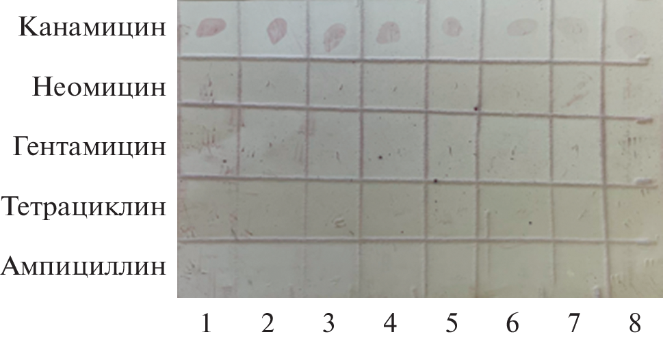 Recombinant antibodies specific to kanamycin were obtained using a sheep display library of scFv fragments (Griffin.1) and the possibility of their use for the determination of kanamycin by dot-immunoassay was demonstrated. The minimum detectable concentration of kanamycin is 1 μg/mL (distinguishable label binding other than background). It has been shown that anti-kanamycin phage antibodies are specific for kanamycin and do not interact with other antibiotics (neomycin, tetracycline, ampicillin, gentamicin). Anti-kanamycin phage antibodies are a promising alternative to monoclonal antibodies for use in the determination of kanamycin.