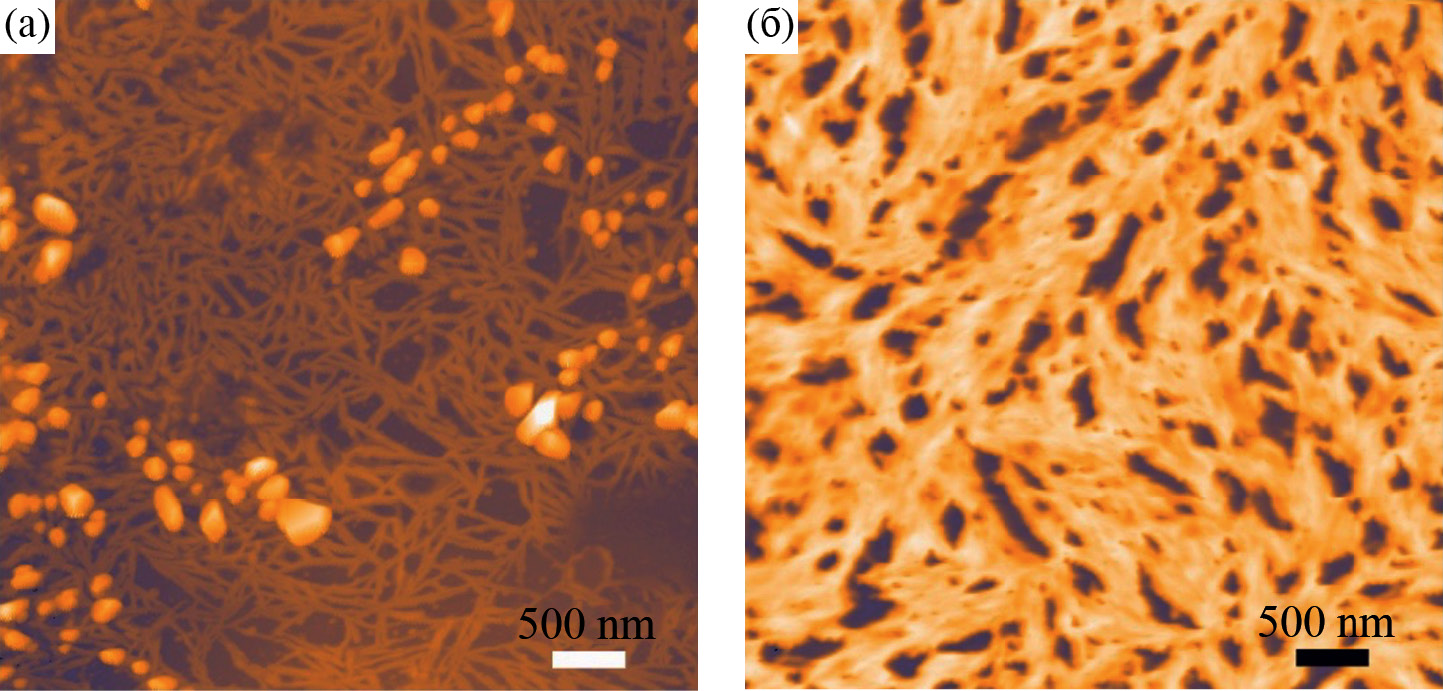 Рис. 2. АСМ-изображения комплексов ЛПС : ХН-5 – 1 : 1 (а) и 1 : 5 (б).