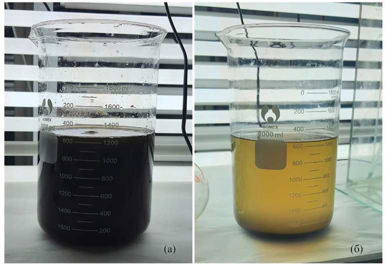 Рис. 6. Способность N. shiloi оседать на дно лабораторного стакана за 1 мин (а), за 3 ч (б).