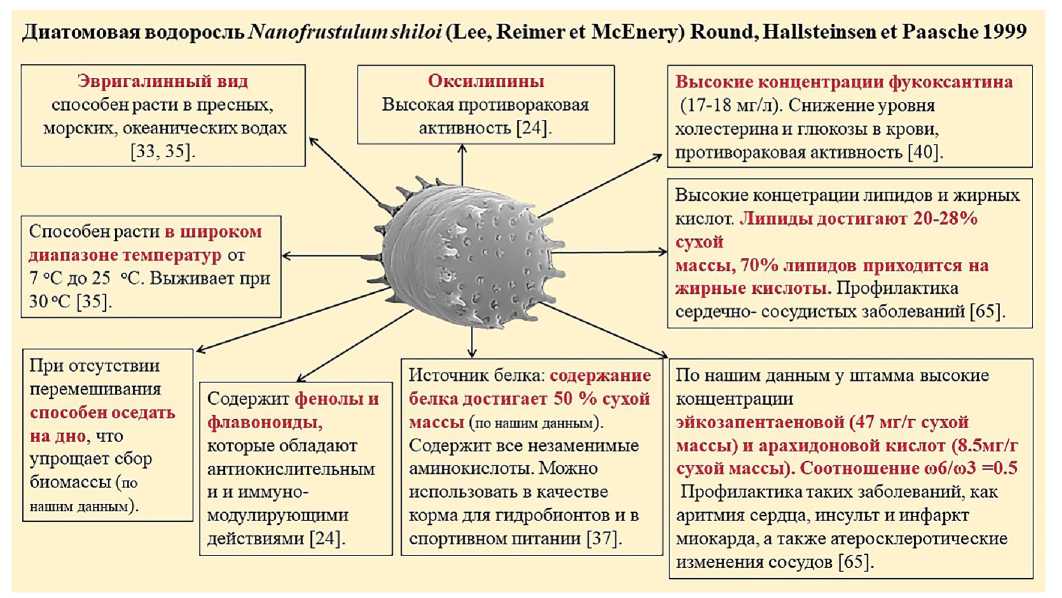 Рис. 8. Биотехнологическая характеристика диатомовой водоросли N. shiloi.