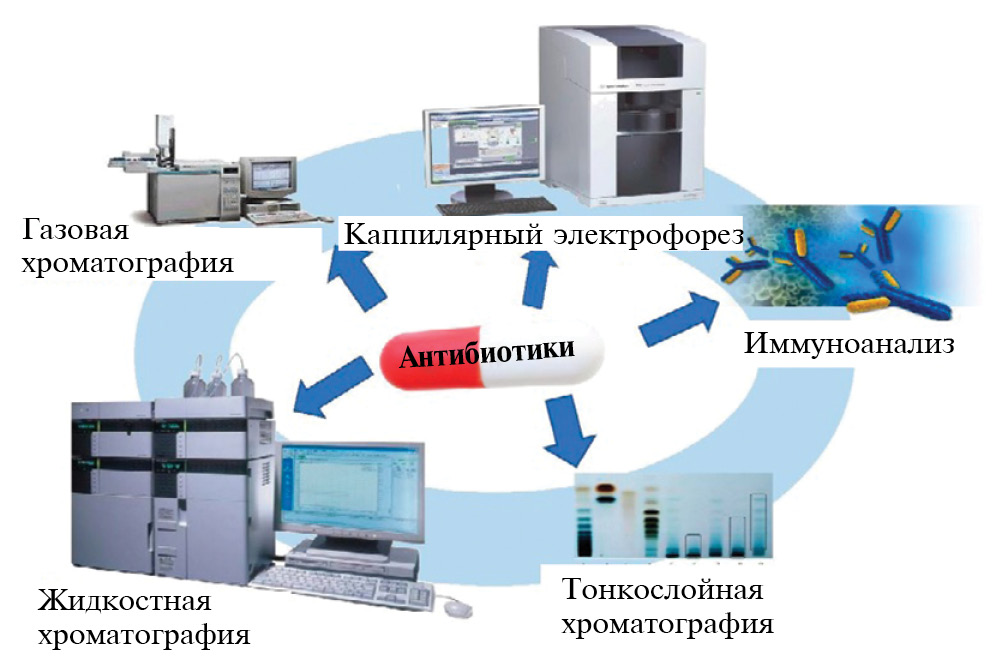 Рис. 1. Аналитические методы определения антибиотиков [1].