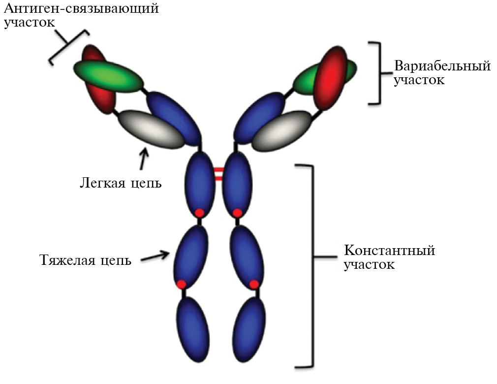 Антитела, образующиеся в сыворотке крови в разных клонах B-лимфоцитов и связывающиеся с различными антигенными детерминантами (эпитопами) молекулы-мишени (антигеном), называют поликлональными антителами. Структура антител представлена на рис. 3 [26].