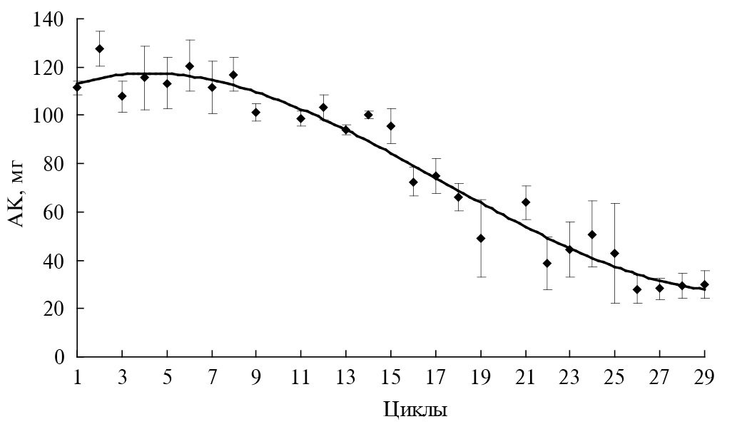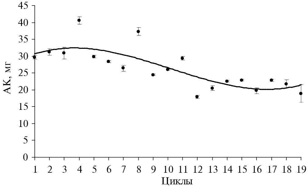 Цикл | АК, мг/мг сухих клеток | ||||