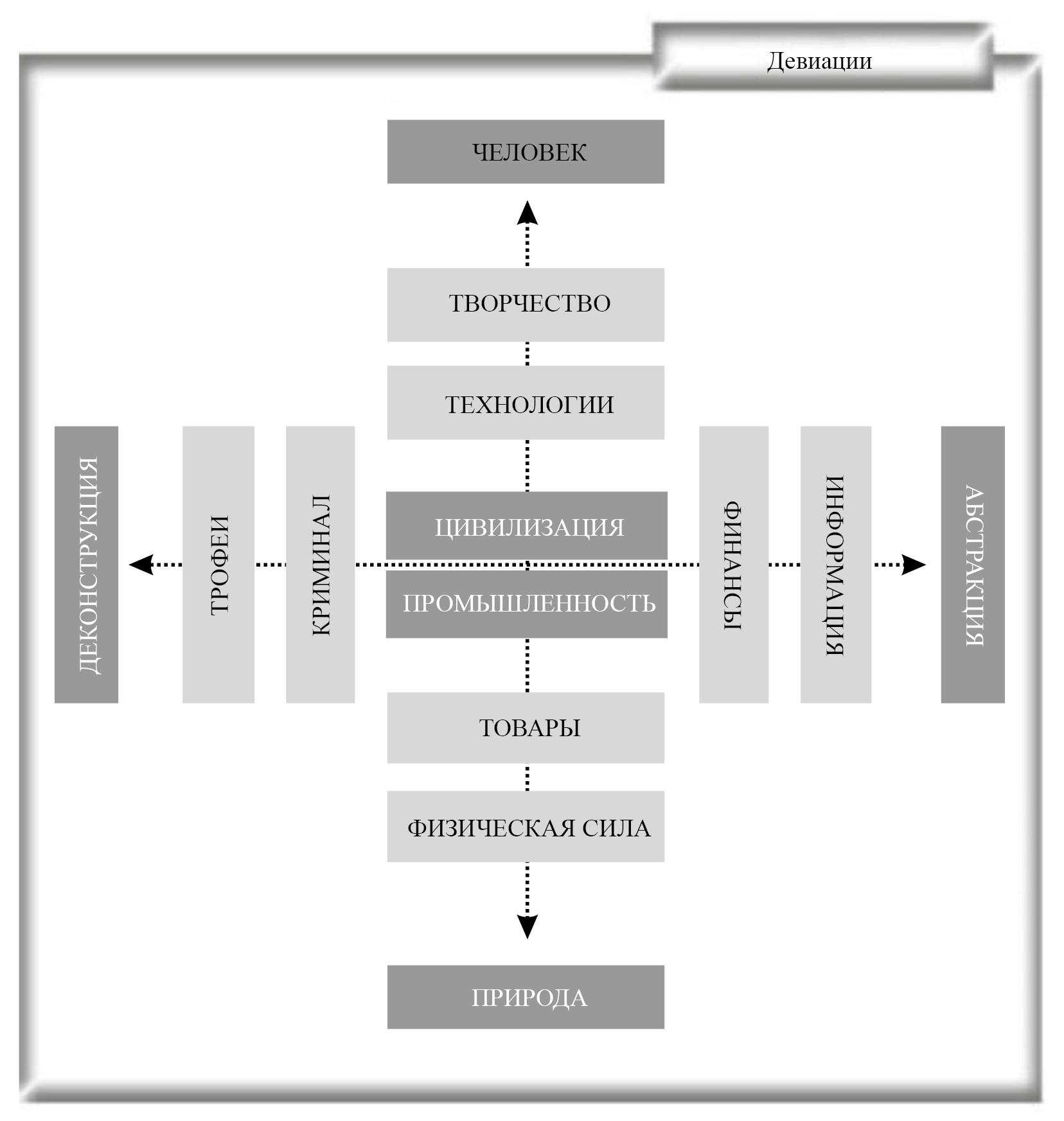 Три мира сращиваются в сложной целостности взаимодействий. Парадоксы универсальной «задачи трех тел» сказываются на этой комплексной среде. Совокупность природной действительности («сущее») и антропологической субстанции, включая организующую ее культурную матрицу («должное»), – это расширяющаяся и эволюционирующая система, которая периодически переживает кризисы («хаотизация организации»). В такие периоды она обретает новые качества, как позитивные, так и негативные.