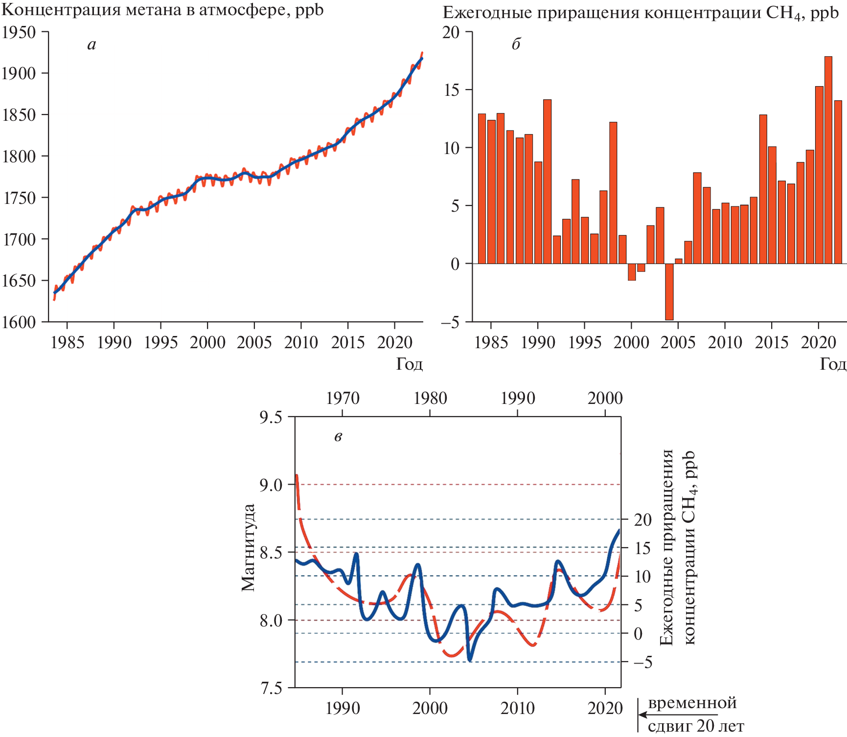 - Dlugokencky E.J., Steele L.P., Lang P.M., Masarie K.A. The growth rate and distribution of atmospheric methane // J. Geophys. Res. 1994. V. 99. P. 17021–17043. https://doi.org/10.1029/94JD01245