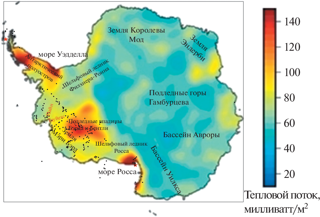 - Lösing M., Ebbing J., Szwillus W. Geothermal heat flux in Antarctica: Assessing models and observations by Bayesian inversion // Front. Earth Sci. 2020. V. 8. Article number 105. https://doi.org/10.3389/feart.2020.00105