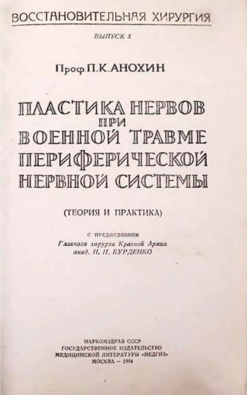 - Анохин П.К. Пластика нервов при военной травме периферической нервной системы (Теория и практика). М.: Медгиз, 1944.