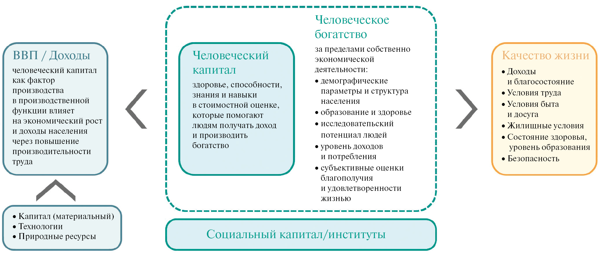 Рис. 1. Человеческий капитал и человеческое богатство как факторы производства и качества жизни