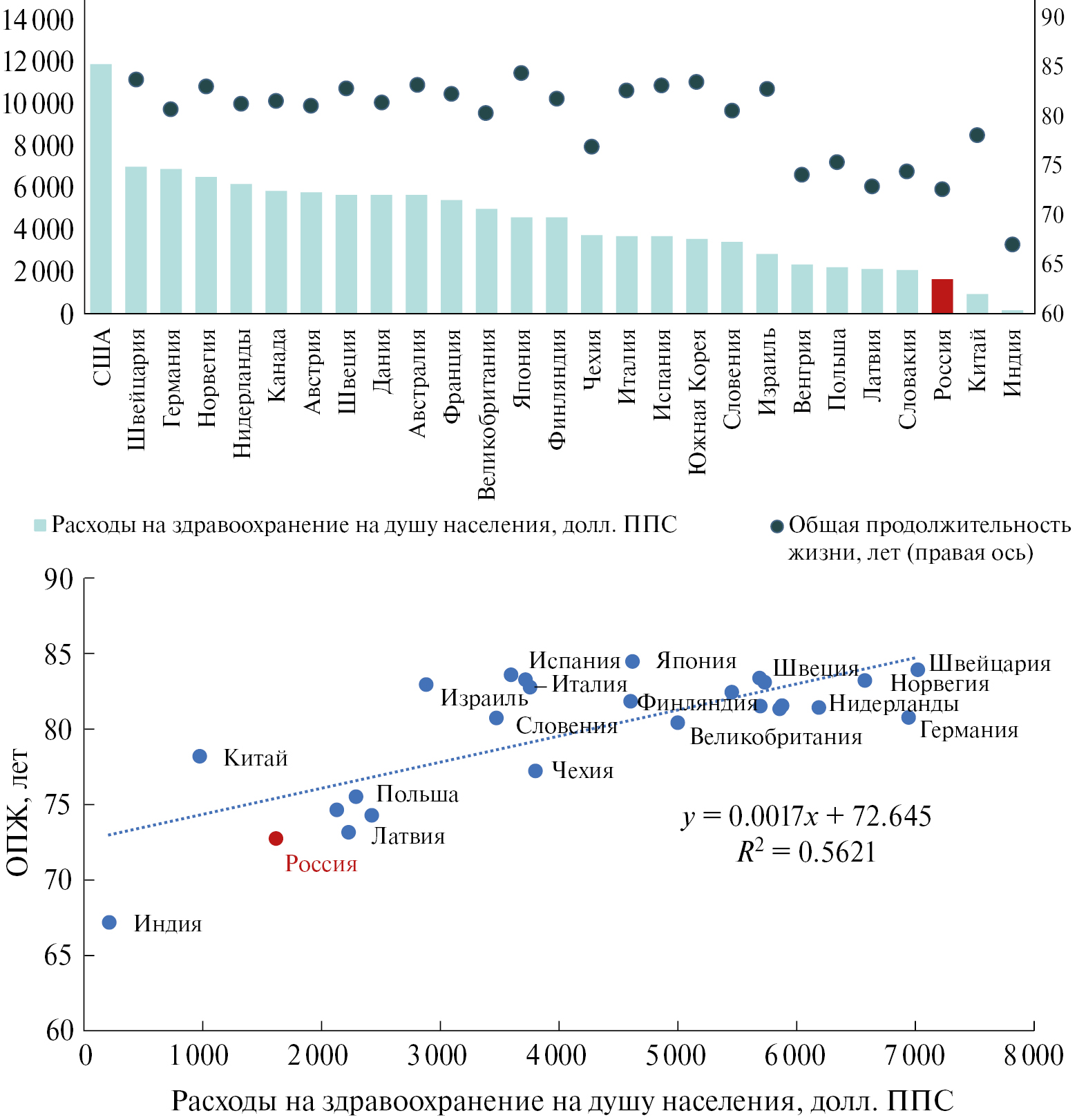 Рис. 6. Финансирование здравоохранения и уровень здоровья