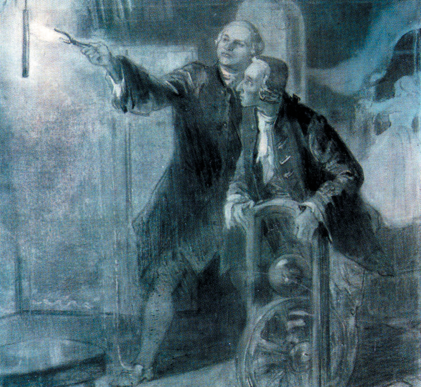 Рис. 1. Опыты с электричеством (Ломоносов и Рихман). Художники В.В. и Л.Г. Петровы [3, c. 47]