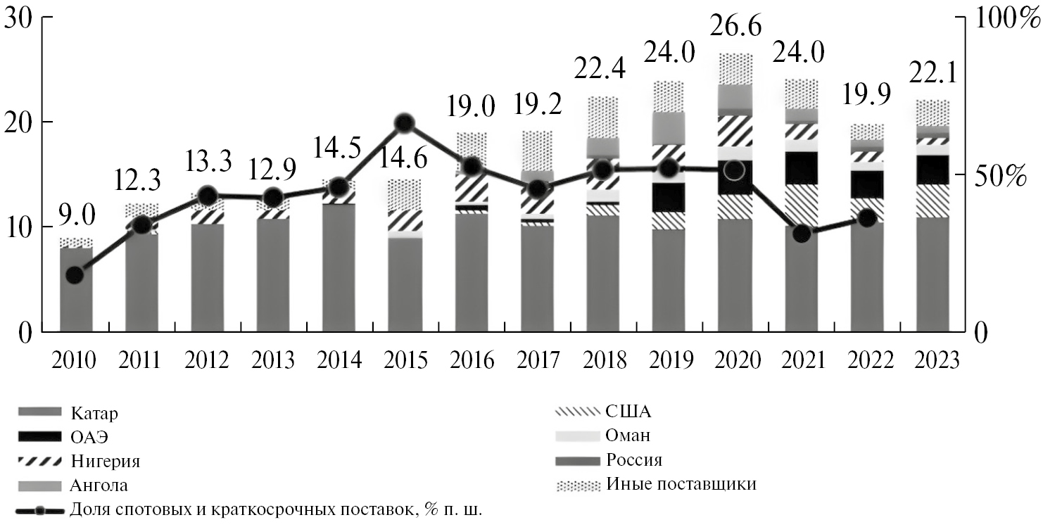 Импорт СПГ, млн т | 8,97 | 19,19 |