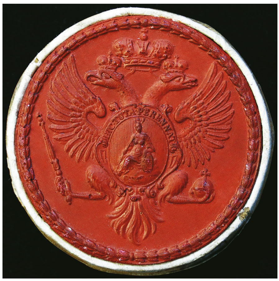 Рис. 5. Сургучный оттиск Большой академической печати 1735 г. © СПбФ АРАН. Р. IV. Оп. 4. Д. 6.