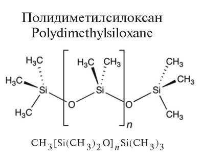 Теплозащитные материалы на основе силикона. Среди органических полимерных материалов превосходной термостойкостью обладают кремнийорганические полимеры со связью SiAOASi в основной цепи. SiAO кремнийорганического полимера обладает очень высокой энергией связи, она составляет приблизительно 443.7 кДж/моль [1]. Наиболее широкое распространение среди кремнийорганических эластомеров, используемых в качестве матрицы ЕТЗМ, получил полидиметилсилоксан (PDMS − Polydimethylsiloxane − CH3[Si(CH3)2O]nSi(CH3)3 (рис. 5) [3]). Он присутствует, например, в эластомере DC 93-022 компании Dow Corning.