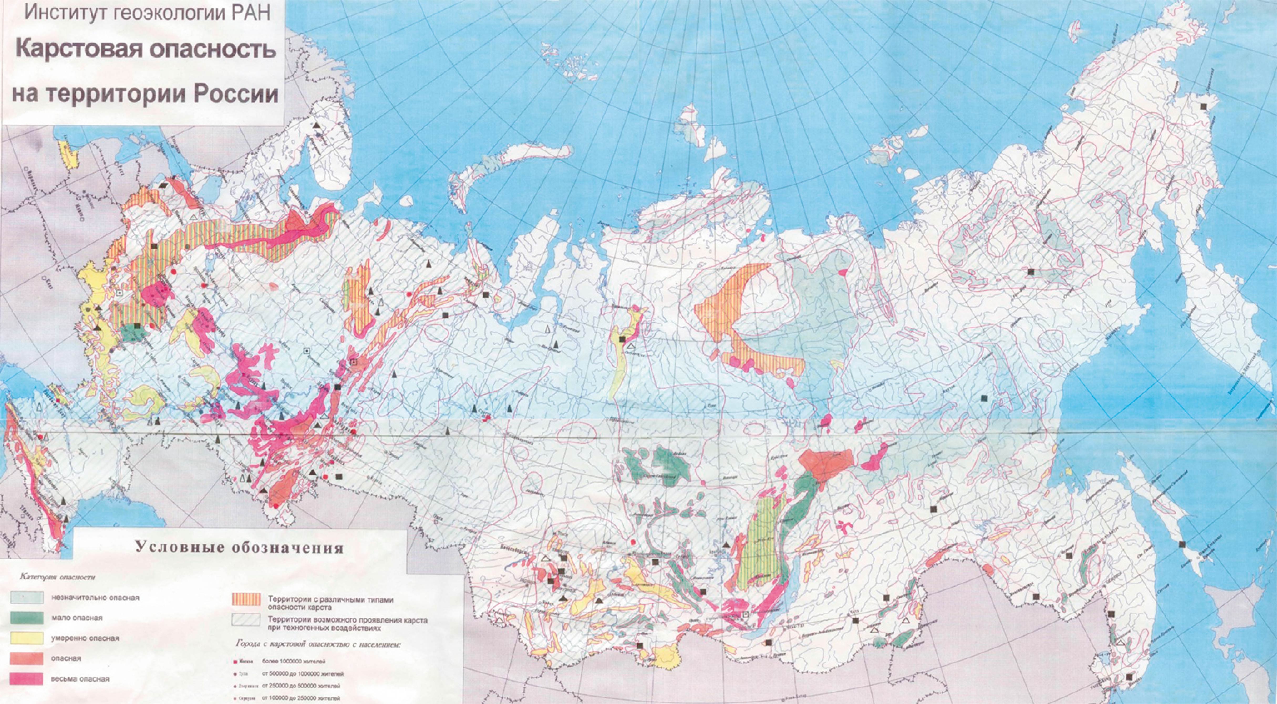 Рис. 7. Карстовая опасность на территории России