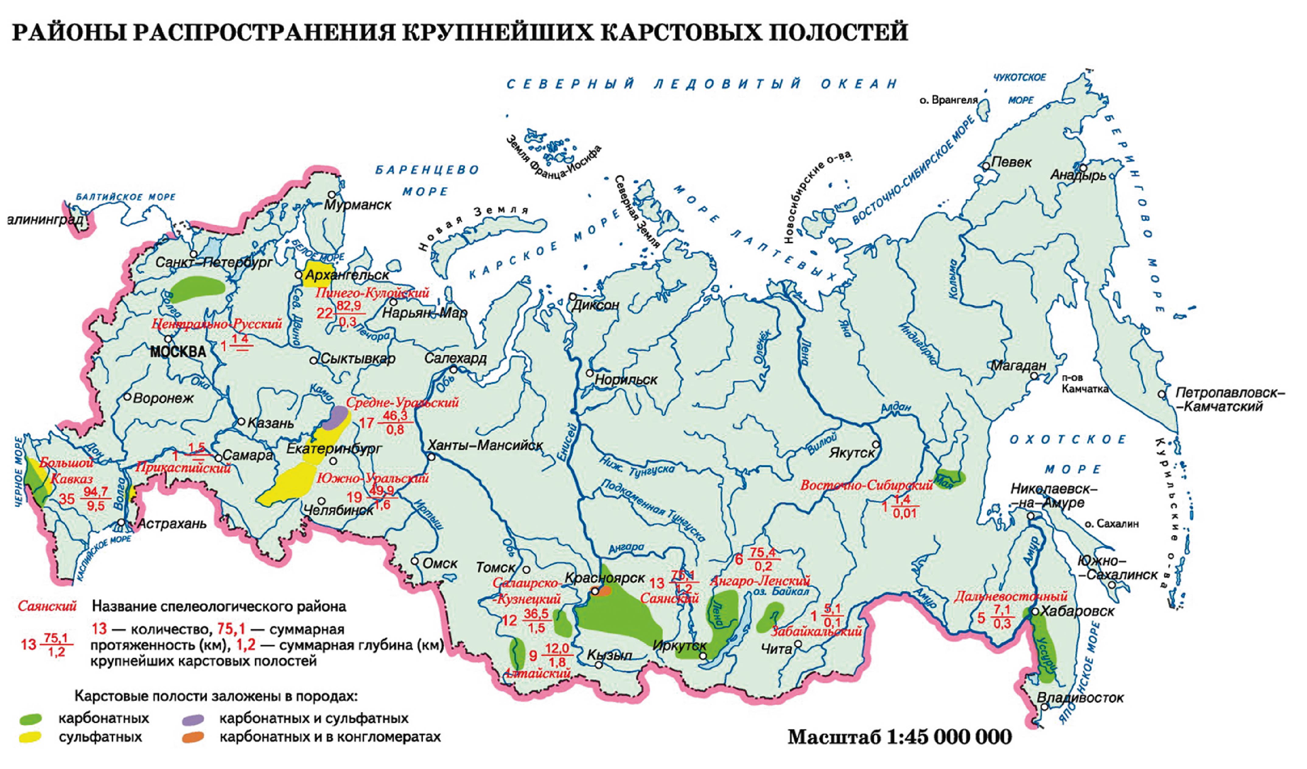 Рис. 8. Районы распространения крупнейших карстовых полостей Источник: [11].