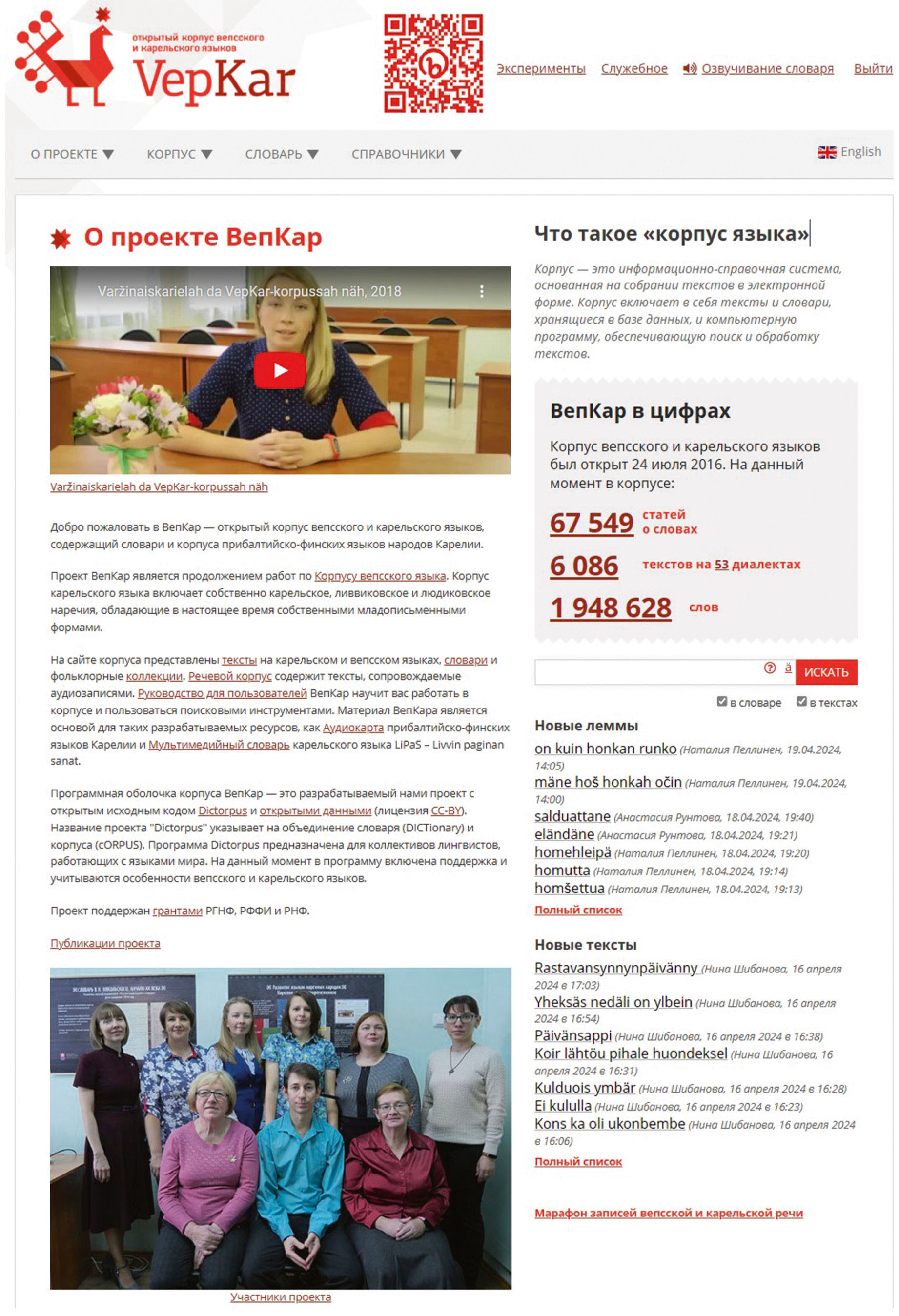 In order to preserve and systematically study the Vepsian and Karelian languages, the staff of the Institute of Language, Literature and History and the Institute of Applied Mathematical Research of the KarSC RAS have created and continue to improve the VepKar language corpus. The project is aimed at preserving and accumulating written texts in Karelian and Vepsian languages, fixing and preserving oral speech, researching the Baltic-Finnish languages of Karelia, editing the norms of newly written versions of Karelian and Vepsian languages, and creating educational applications. Anyone can use VepKar as an electronic library and a full-fledged electronic dictionary, which makes this resource very popular.