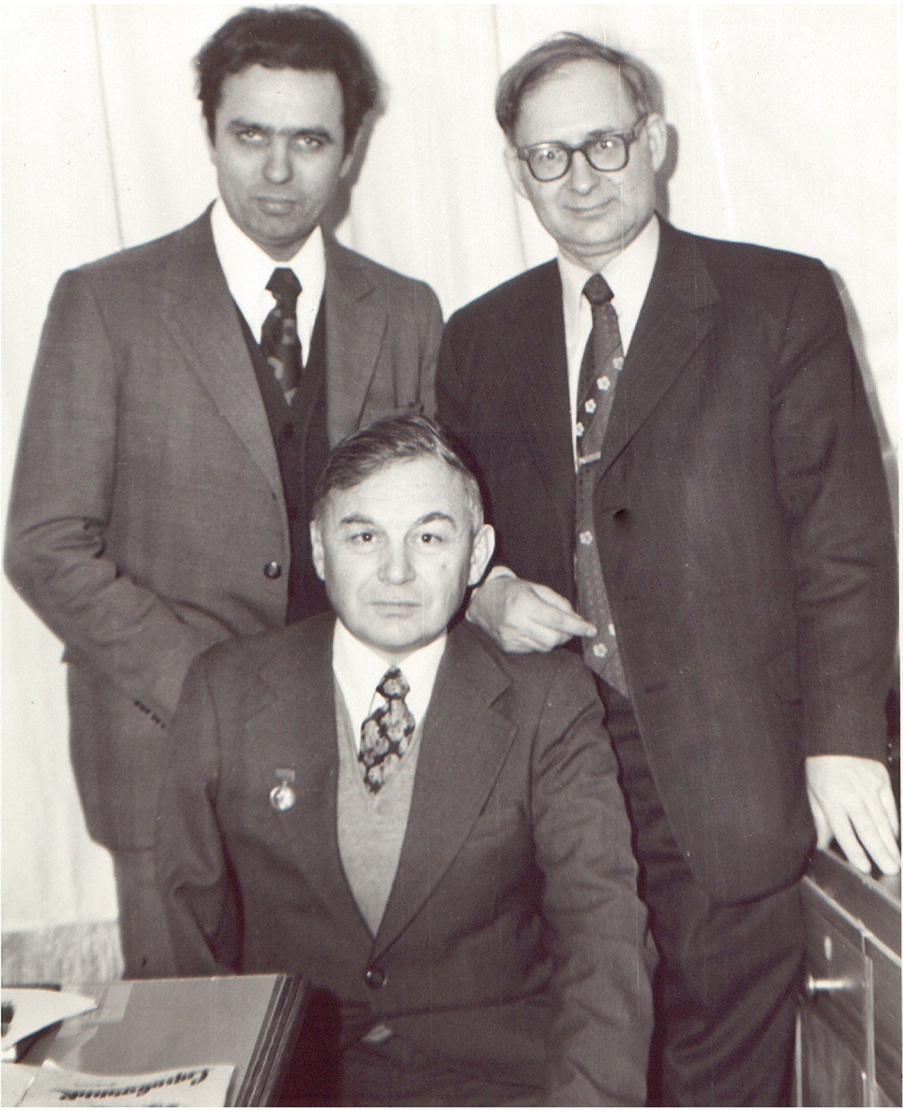 Рис. 3. Слева направо: А.К. Платонов, Т.М. Энеев, Д.Е. Охоцимский. 1960-е годы