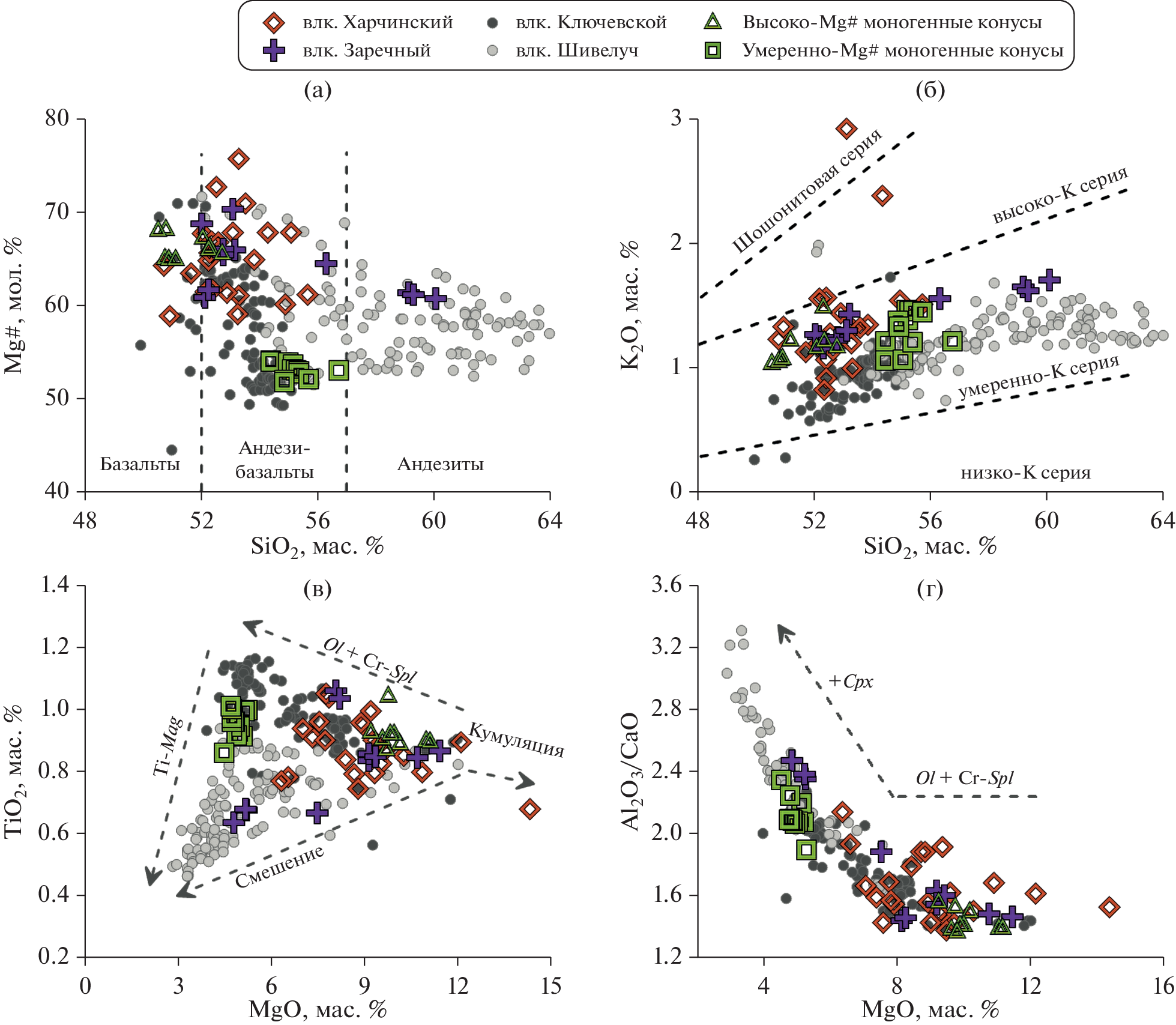 Новые данные по составу пород и минералов вулканов Харчинский и Заречный (Центральная Камчатская депрессия): гетерогенность мантийного источника и особенности эволюции магм в коровых условиях