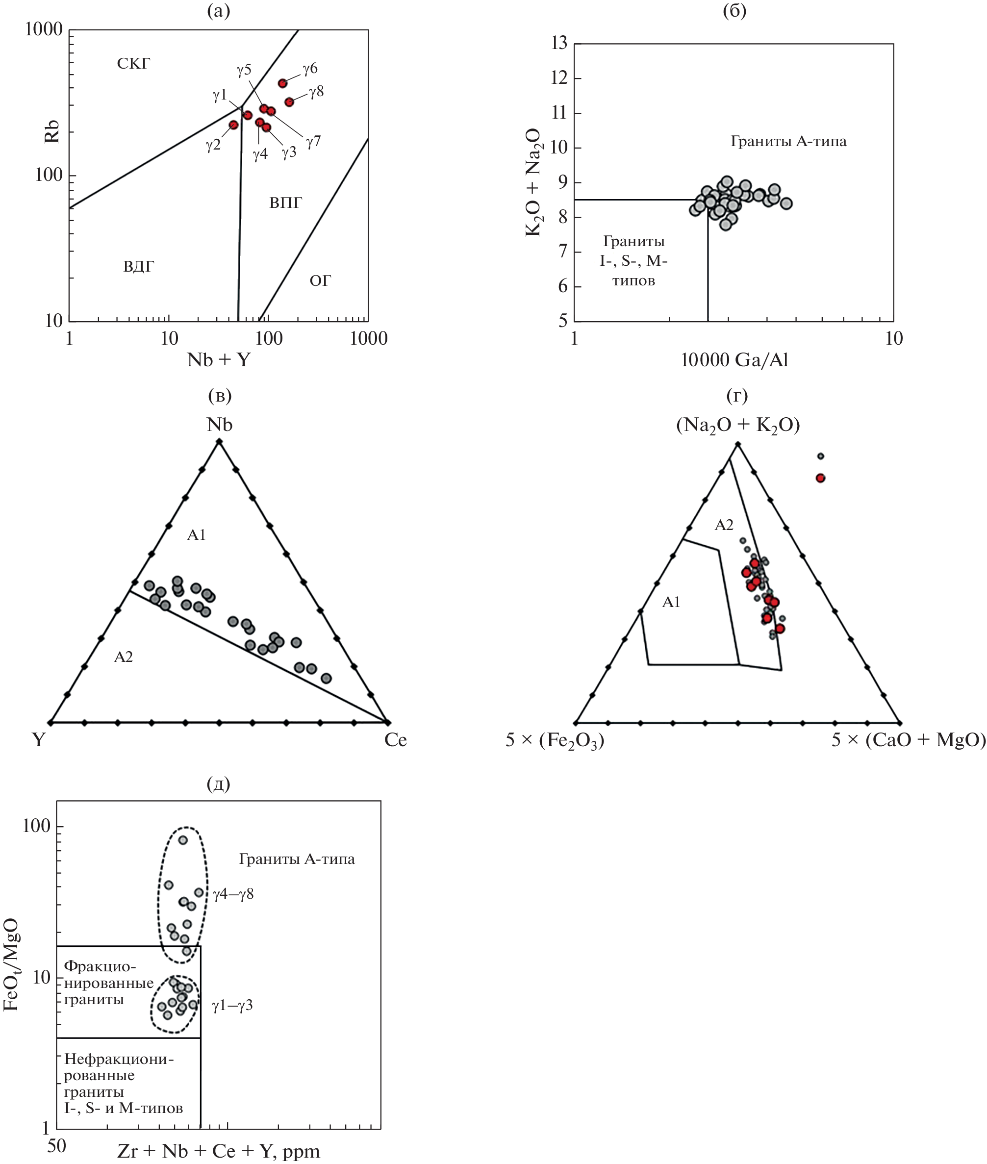 - Whalen J.B., Currie K.L., Chappell B.W. A-type granites: geochemical characteristics discrimination and petrogenesis // Contrib. Mineral. Petrol. 1987. V. 95. P. 407–419.