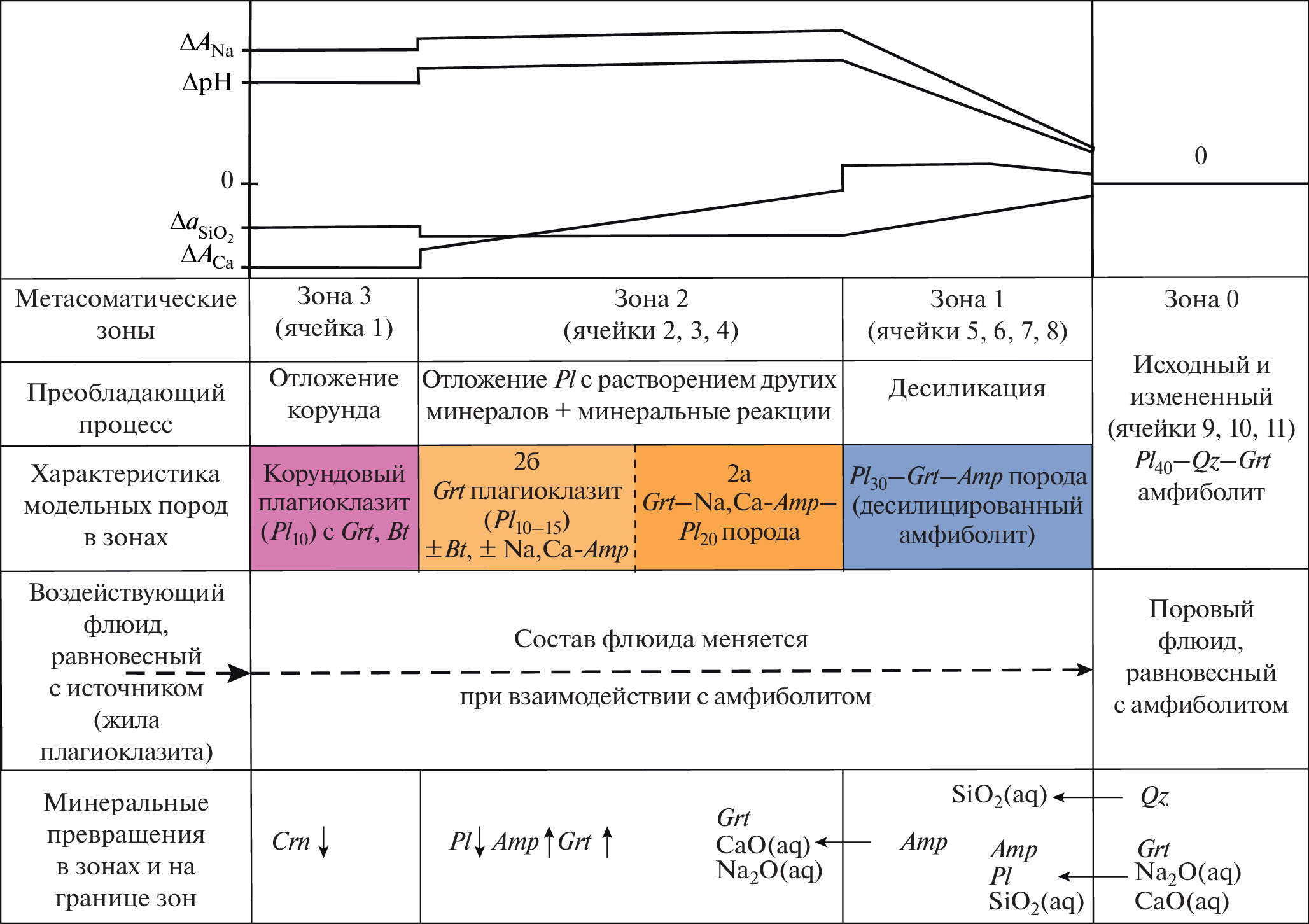 The paper presents the results of a study of desilicated rocks of the middle crust at the level of amphibolite facies using the example of corundum-bearing plagioclasites developing over the metabasites at the unique Khitostrov mineral deposit in the Belomorian-Lapland orogen of the Fennoscandian Shield. The main attention is paid to new geological data, documentation and analysis of metasomatic zoning, determination of the P-T conditions of its formation, and a model of the metasomatic process.