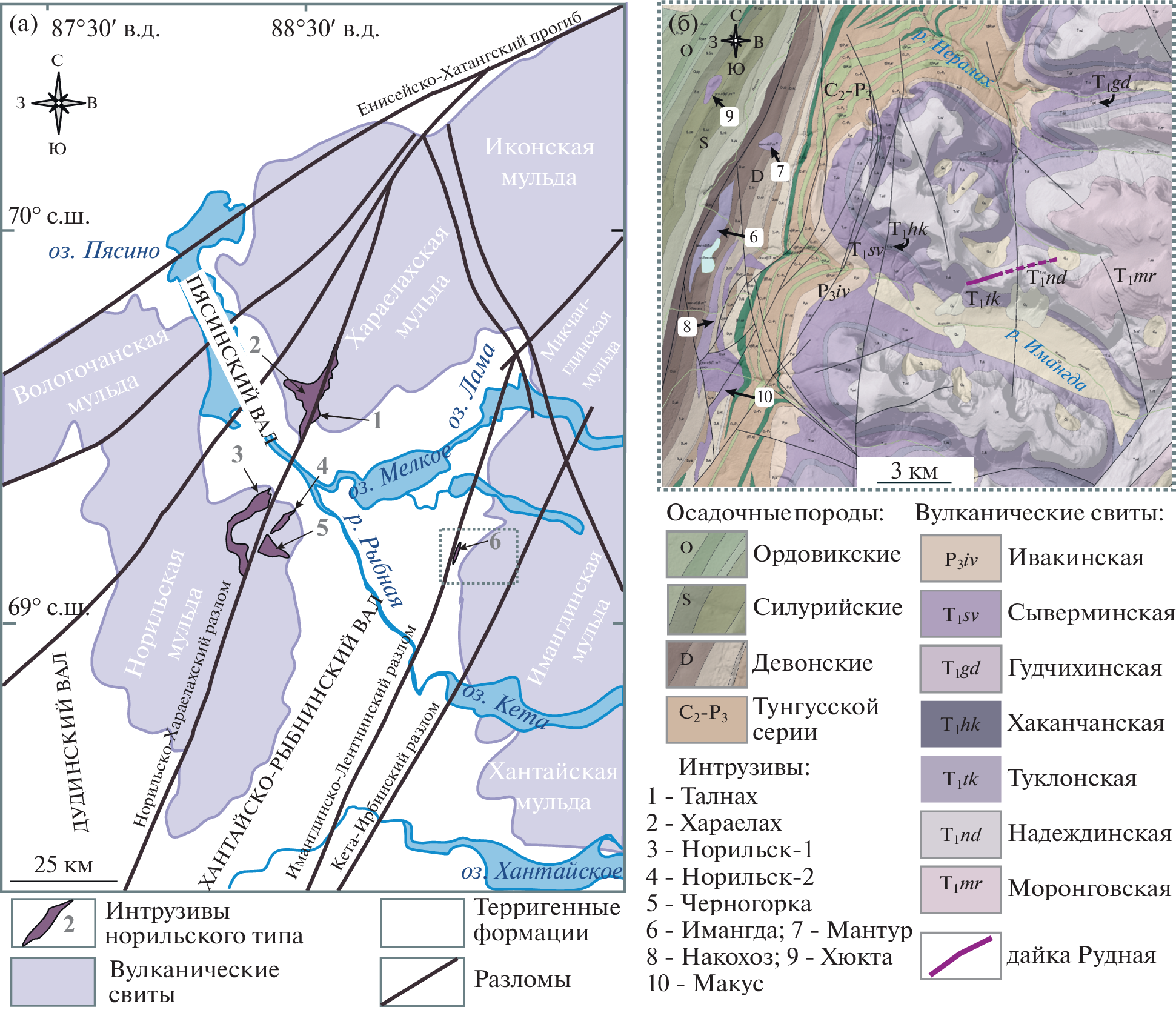 - Latyshev A.V., Rad’ko V.A., Veselovskiy R.V. et al. Correlation of the Permian-Triassic ore-bearing intrusions of the Norilsk region with the volcanic sequence of the Siberian Traps based on the paleomagnetic data // Econom. Geol. 2020. V. 115. № 6. P. 1173–1193.