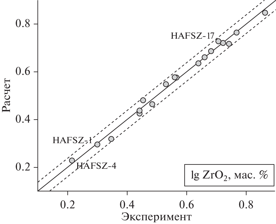 - Borisov A., Aranovich L. Zircon solubility in silicate melts: new experiments and probability of zircon crystallization in deeply evolved basic melts // Chem. Geol. 2019. V. 510. P. 103–112.