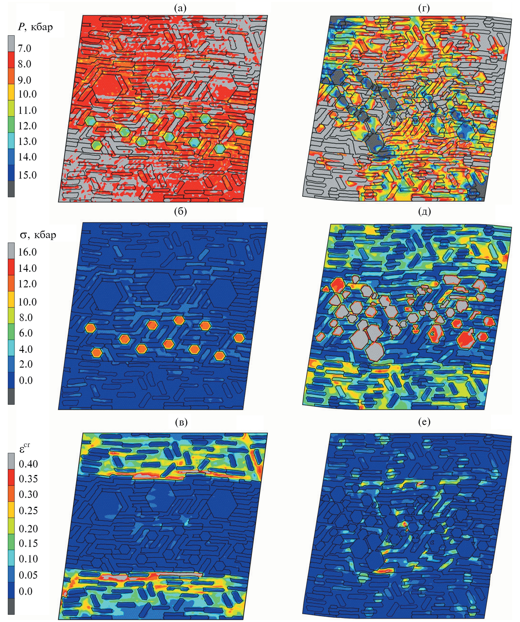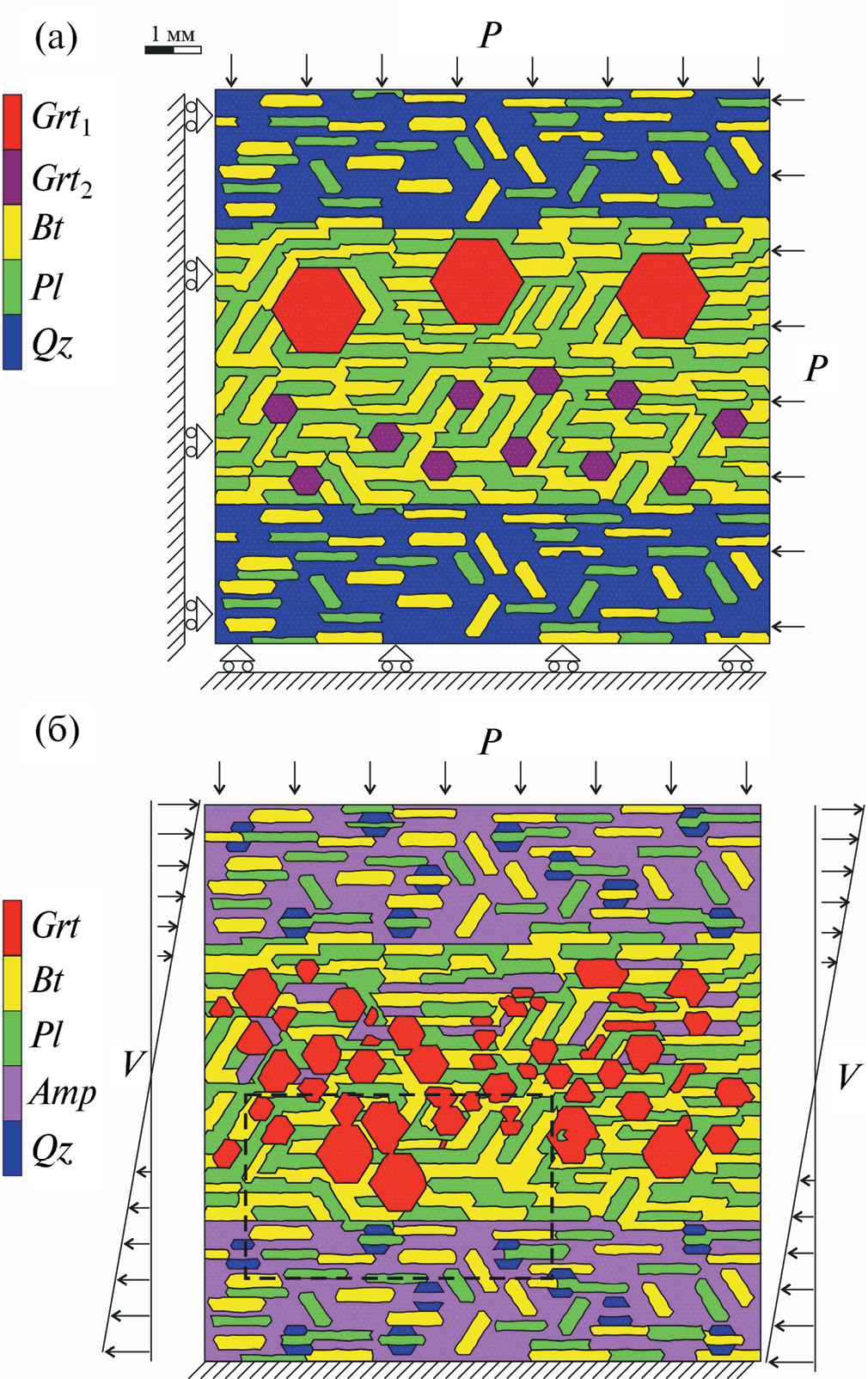 Вопрос о соотношении литостатического и избыточного давления имеет ключевое значение для реконструкции условий петрогенезиса в глубинных зонах сдвиговых деформаций. В настоящей статье на примере приразломных тектонитов контрастного химического состава Приенисейской региональной сдвиговой зоны (ПРСЗ) приведены структурно-петрологические свидетельства таких превышений давления и температуры при интенсивных сдвиговых деформациях в неоднородной среде, что может свидетельствовать о тектоническом контроле стресс-метаморфизма в шовных зонах коры. Цель данного исследования – разработать новый подход для описания поведения поликристаллического агрегата на основе численного моделирования методами механики деформируемого твердого тела (МДТТ), который дает возможность определить условия и факторы генерации сверхдавления.