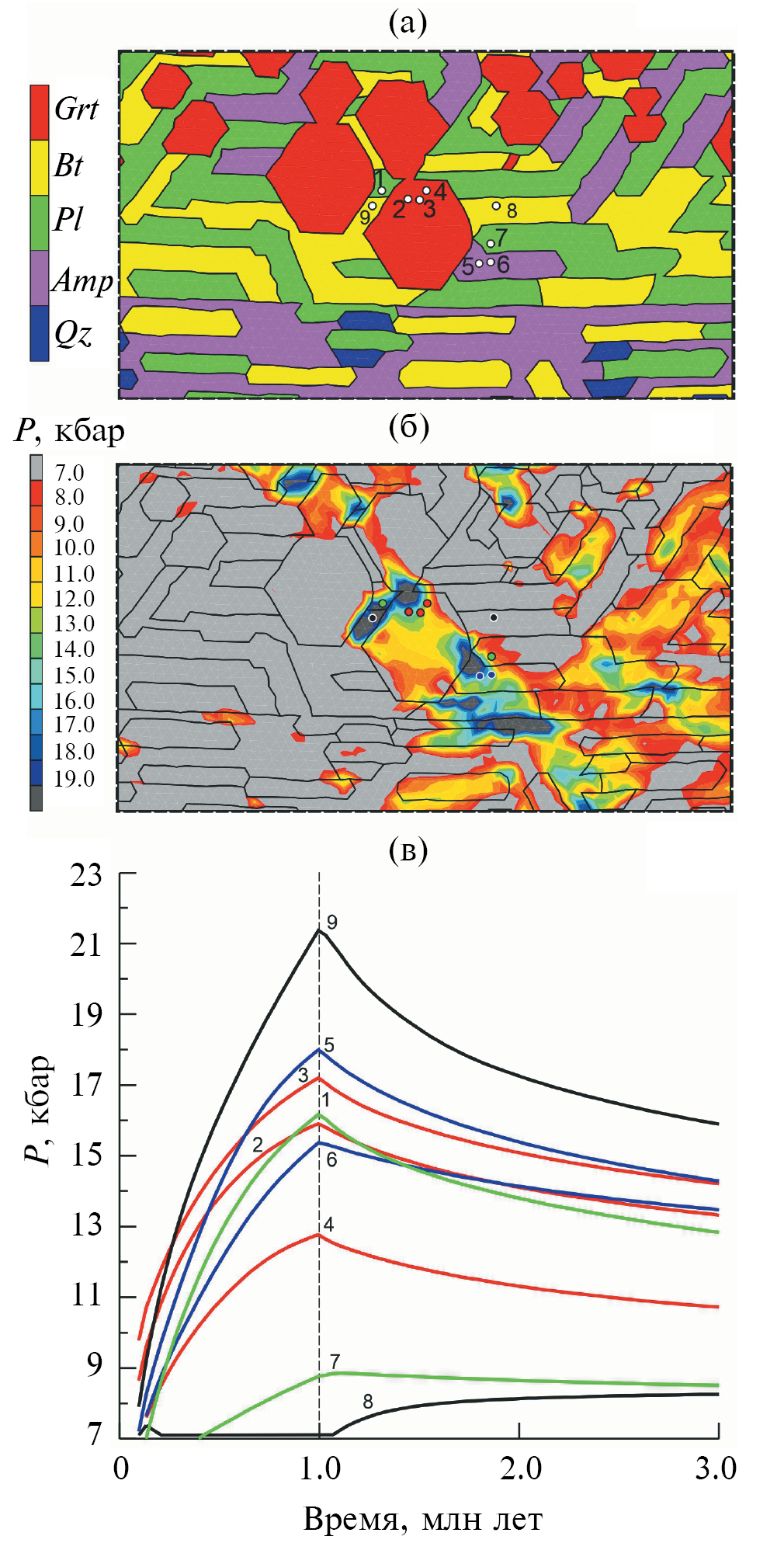 В последнее время выявлена важная роль синсдвиговых метаморфических процессов в формировании структур складчатых поясов, что обусловило использование продуктов динамометаморфизма для решения многих петрогенетических задач. В ряде работ детально изучены процессы фрагментации вещества c обособлением реологически контрастных доменов с индивидуальной P-T-t-d историей формирования (Aerden et al., 2013; Bell et al., 2013), выявлены соотношения литостатического и тектонического давления в глубинных зонах пластических сдвиговых деформаций (Burg, Schmalholz, 2008; Gerya, 2015; Schmalholz, Podladchikov, 2013). В отношении механизма генерации надлитостатического давления рассматривается несколько подходов, описывающих поведение вещества либо в микромасштабе на уровне минеральных зерен (Тен, 1993; Vrijmoed et al., 2009; Moulas et al., 2013; Vrijmoed, Podladchikov, 2015; Tajchmanova et al., 2015), либо в масштабе блоков коры или литосферы в целом (Schmalholz, Podladchikov, 2014; Gerya, 2015). Особенно активно в современной литературе обсуждается роль тектонического стресса как дополнительного фактора метаморфизма в связи с вопросами генерации сверхдавлений в субдукционных и сдвиговых зонах (Schmalholz, Podladchikov, 2013). На основе модельных примеров удалось создать современную теоретическую концепцию тектонического сверхдавления и вариаций давления в связи с деформациями пород и их реологическими свойствами (Mancktelow, 2008). Эти представления подтверждены результатами численного моделирования динамики сдвиговых зон (Petrini, Podladchikov, 2000; Li et al., 2010; Schmalholz, Podladchikov, 2013), что позволяет говорить о возможном двукратном превышении тектонического сверхдавления над литостатическим в зоне пластического сдвига на уровне верхней и средней коры. Результаты цитируемых авторов позволяют предполагать, что тектоническое сверхдавление, вызванное гетерогенным стрессом в процессе сдвиговых деформаций, может быть существенно выше литостатической нагрузки. Недавние наблюдения показывают, что механически устойчивые отклонения давления от литостатического могут быть значительными даже в микромасштабе, т. е. в масштабе зерен минералов (Tajchmanova et al., 2015).