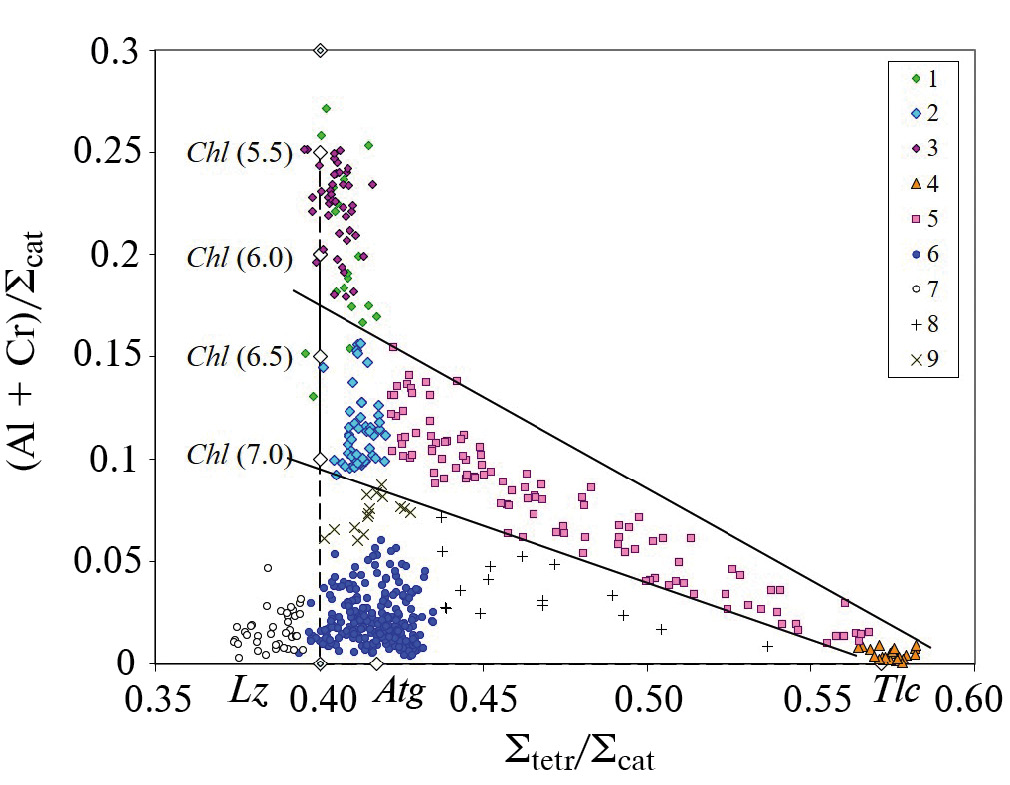 - Mellini M., Trommsdorff V., Compagnoni R. Antigorite polysomatism: Behaviour during progressive metamorphism // Contrib. Mineral. Petrol. 1987. V. 97. P. 147–155.
