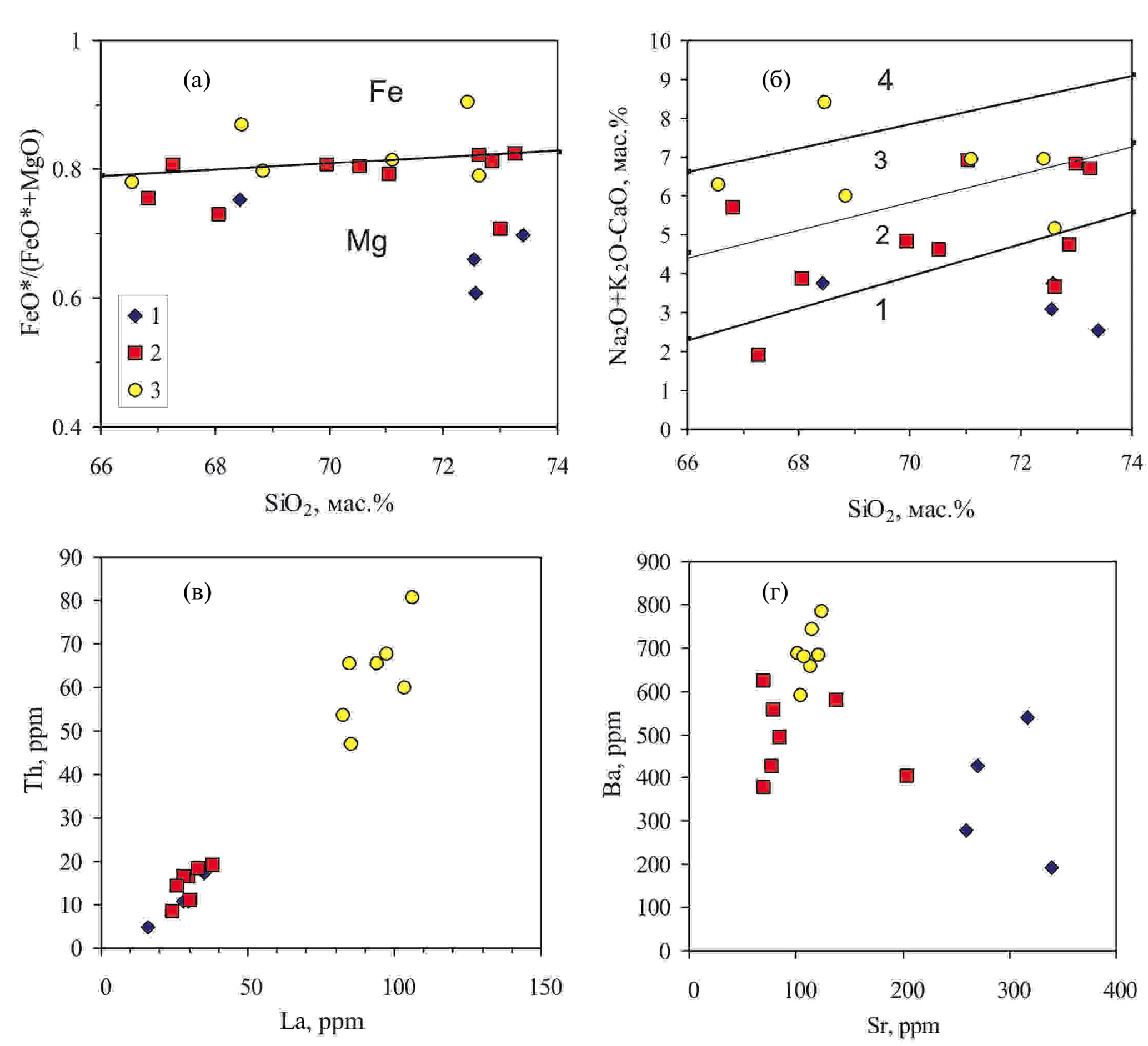 - Whalen J.B., Currie K.L., Chappell B.W. A-type granite: geochemical characteristics, discrimination and petrogenesis // Contrib. Mineral. Petrol. 1987. V. 95. P. 407‒419.
