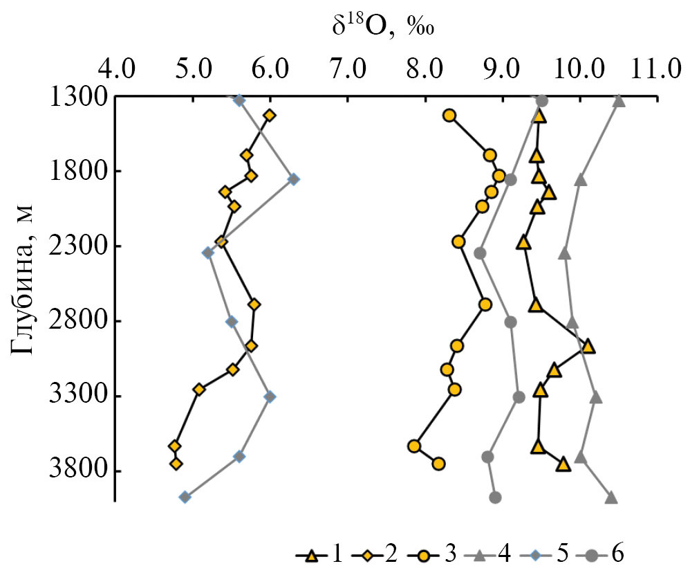 Оценка изотопных параметров флюидной фазы в настоящей работе проведена с помощью двух изотопных систем – водорода и кислорода по результатам изучения биотита. Изотопное отношение водорода в биотите не подвержено искажению за счет ретроградного обмена, поскольку в породе нет других Н-содержащих фаз, и оно контролируется исключительно равновесием с флюидом, что позволяет более четко ответить на вопрос о происхождении последнего.