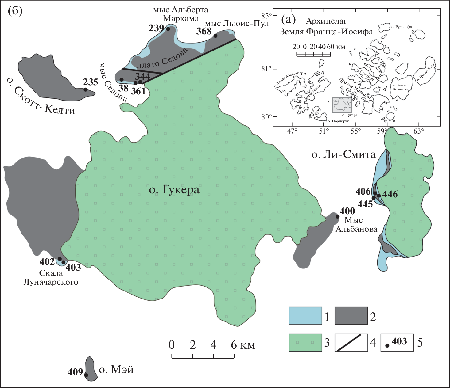 - Карякин Ю.В., Шипилов Э.В. Геохимическая специализация и 40Ar/39Ar возраст базальтоидного магматизма островов Земля Александры, Нортбрук, Гукера и Хейса (архипелаг Земля Франца-Иосифа) // Докл. АН. 2009. Т. 425. № 2. С. 213–217.