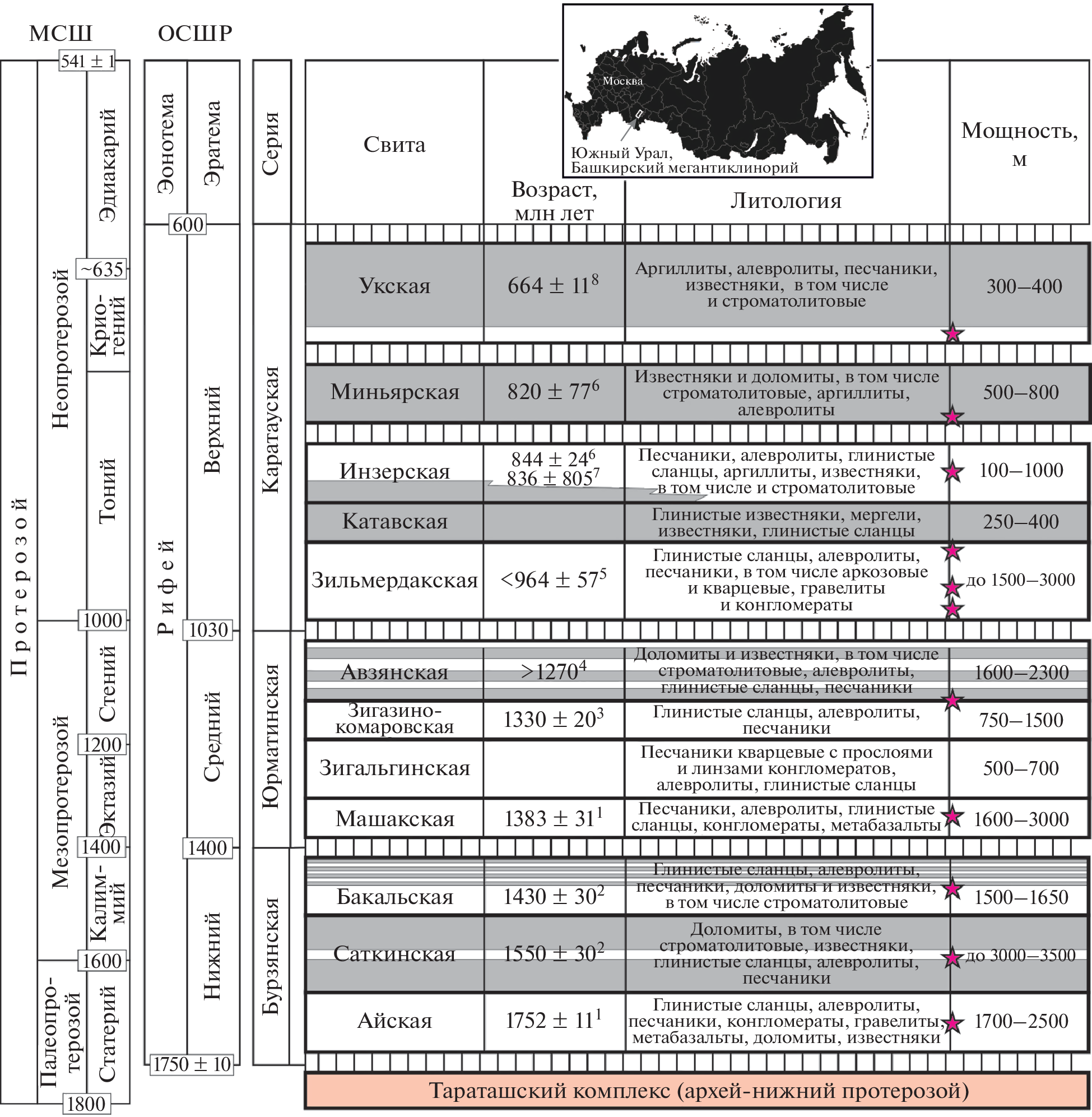 - Chumakov N.M., Semikhatov M.A. Riphean and Vendian of the U.S.S.R. // Precambrian Res. 1981. V. 15. P. 229–253.