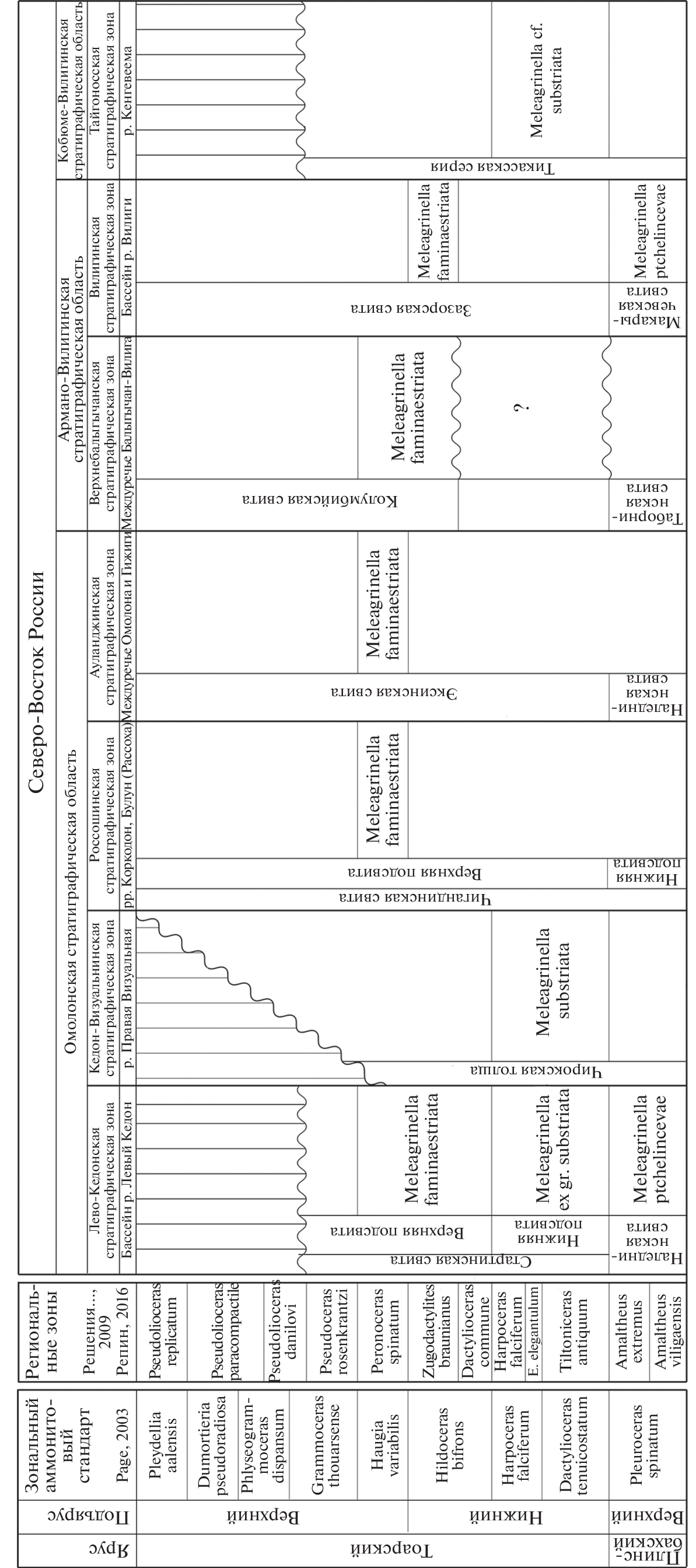 Based on the chronological sequence of species of the bivalve genus Meleagrinella Whitfield, 1885 (family Oxytomidae Ichikawa, 1958) established in the Toarcian deposits of Northeast Russia, Eastern Siberia, and South Germany, a biochronological scale of the Lower Toarcian is proposed. Three oxytozones corresponding to Boreal ammonite zones are established: Meleagrinella golberti Oxytozone = Tiltoniceras antiquum and Harpoceras falciferum zones; Meleagrinella substriata Oxytozone = Dactylioceras commune Zone; Meleagrinella prima Oxytozone = Zugodactylites braunianus and Pseudolioceras compactile zones. Using the proposed zonation, an interregional correlation of sections of the Lower Toarcian of the North-East of Russia (Astronomicheskaya, Saturn, Brodnaya, Start rivers), Eastern Siberia (Anabar Bay, Markha, Tyung, Vilyui, Kelimyar, Motorchuna, wells of the Vilyui syneclise) and South Germany (the Ludwig Canal) is performed.