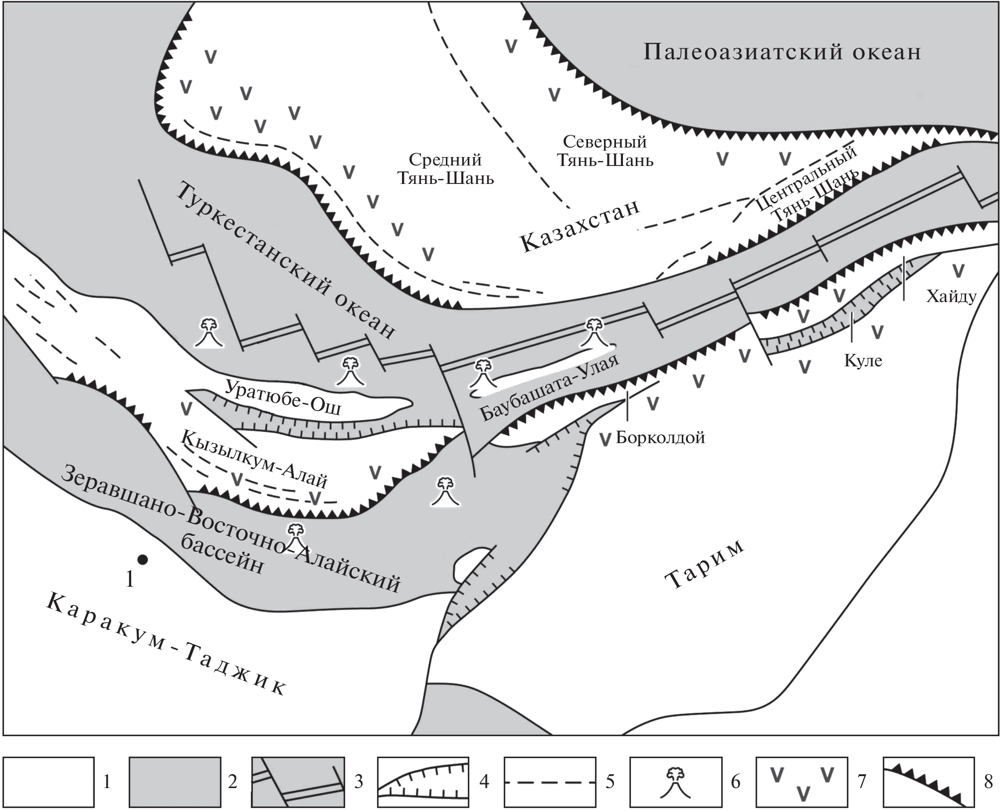 - Biske Yu.S., Seltmann G.R. Paleozoic Tian-Shan as a transitional region between the Rheic and Urals-Turkestan Oceans // Gondwana Res. 2010. V. 17. P. 602–613.