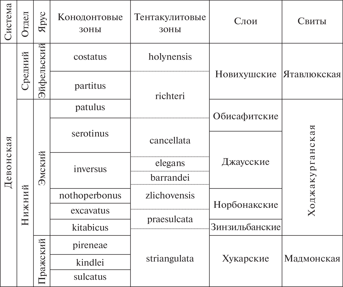 - Kim A.I., Erina M.V., Kim I.A., Salimova F.A., Meshchankina N.A., Rakhmonov U.D. The Pragian–Emsian event and subdivision of the Emsian in the Zinzilban and Khodzha–Kurgan sections // SDS Newslett. 2012. V. 27. P. 38–41.