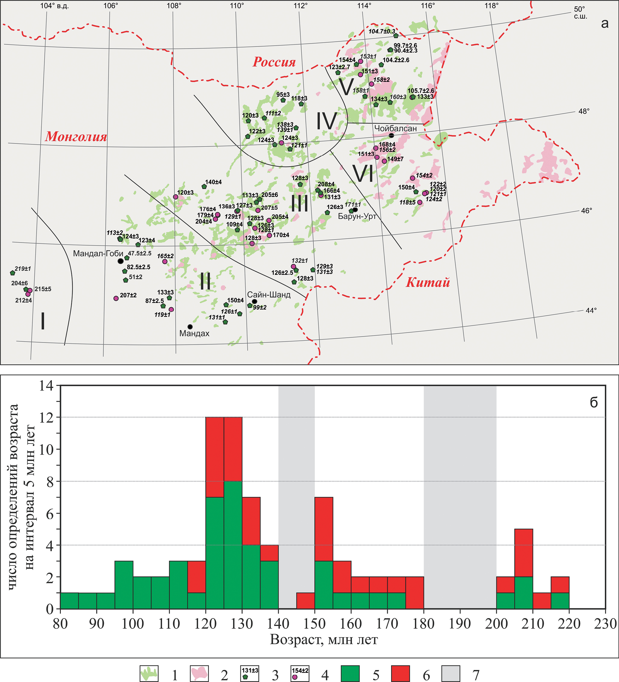 Таблица 2. Геохронологические данные для мезозойских–раннекайнозойских вулканических пород, распространенных на территории позднемезозойского Восточно-Монгольского вулканического пояса