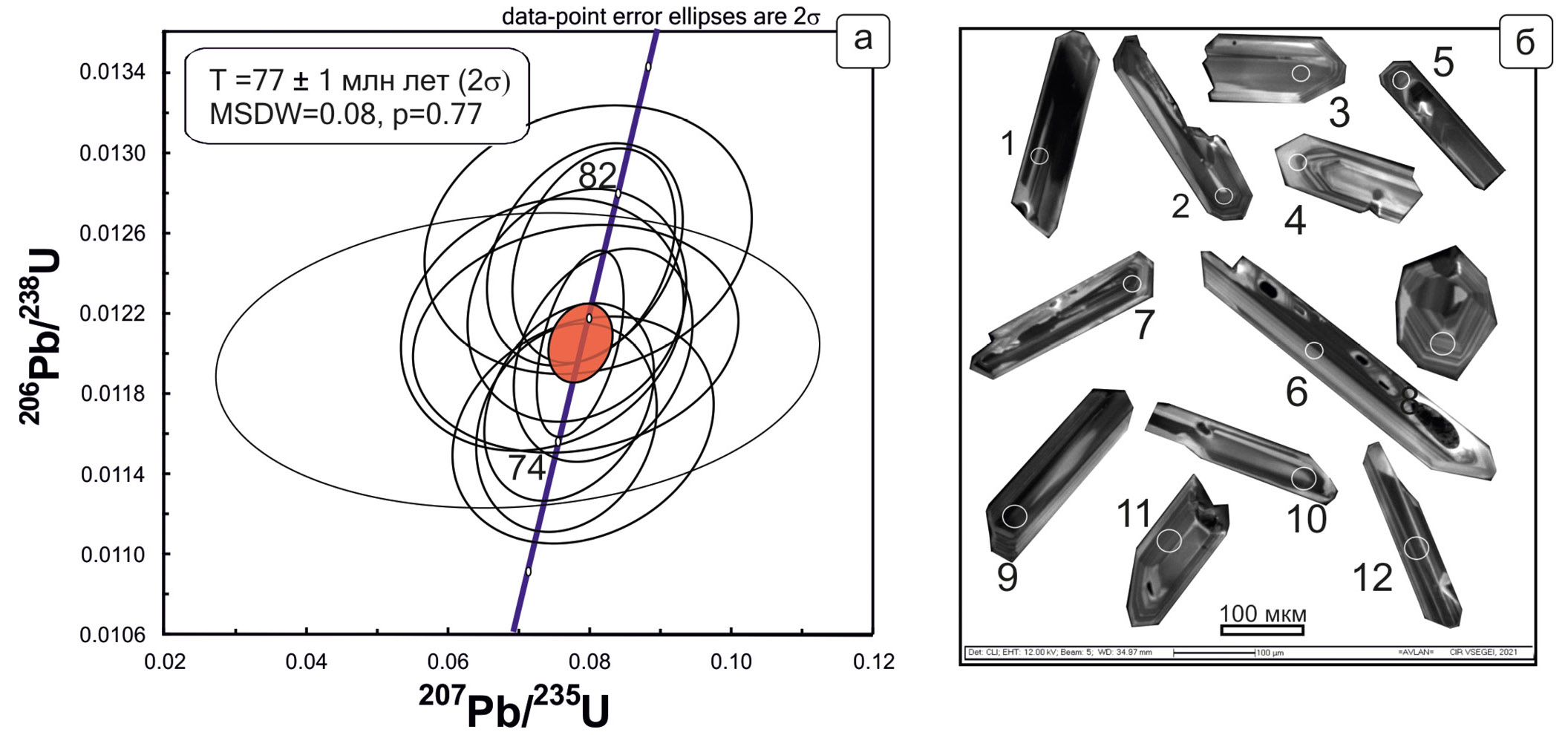 Описание разреза, седиментологические, петрографические, ихнологические исследования, а также изучение остатков макрофауны проведены Е.Ю. Барабошкиным (МГУ), магнитостратиграфические данные получены А.Ю. Гужиковым, В.А. Грищенко (СГУ), анализ изотопных датировок выполнен В.В. Акининым (СВКНИИ ДВО РАН), палинологический анализ проведен Г.Н. Александровой (ГИН РАН), бентосные фораминиферы изучались И.П. Рябовым (СГУ), на-нопланктон — М.А. Устиновой (ГИН РАН), жилианеллы — В.С. Вишневской (ГИН РАН), а данные по геохимии стабильных изотопов получены Н.А. Ртищевым (МГУ, ГИН РАН) под руководством Б.Г. Покровского (ГИН РАН) в Лаборатории геохимии изотопов и геохронологии ГИН РАН.