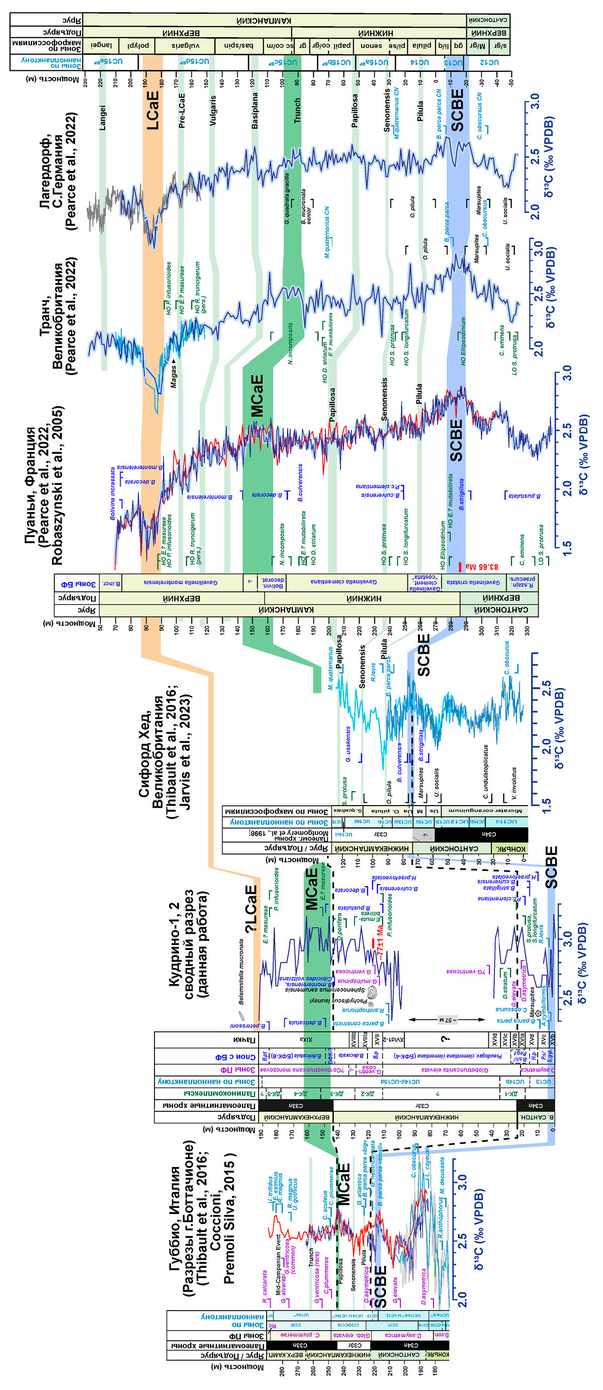 - Jenkyns H.C., Gale A.S., Corfield R.M. Carbon and oxygen isotope stratigraphy of the English chalk and Italian Scaglia and its paleoclimatic significance // Geol. Mag. 1994. V. 131. P. 1–34.