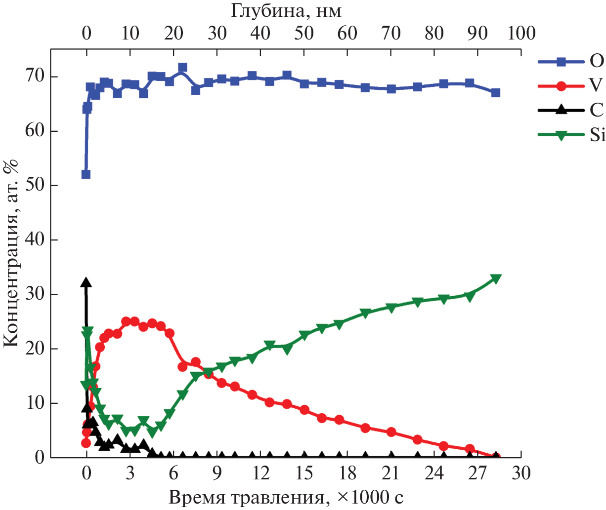 Objects of the study were colorless single crystals of quartz with a total amount of impurities lesser than 1%. Implantation of vanadium ions into the quartz structure was carried out parallel to the symmetry axis C. Irradiation doses varied from 0.75 × 1017 to 1.5 × 1017 ion/cm2. With the purpose to anneal radiation defects and to redistribute the implanted vanadium admixture, the post-implanting heat treatment was carried out in the air atmosphere, within the range 200–1000 °C. There was solved issue of ion-beam modification of the colorimetric properties of the quartz matrix with simultaneous control of change in the nature of color of the piezo quartz raw material. In result of the study, samples with annealing temperatures of 383 and 585 °C were investigated most thoroughly by methods of adsorption optical spectroscopy. The quartz sample with annealing temperature 383 °C has acquired an olive-green color due to formation of oxide nanoprecipitates of vanadium ions with different valences: V2+, V3+, V4+. The quartz sample with annealing temperature 585 °C become discolored in result of oxidation of vanadium ions and their transition in the pentavalent state V5+.