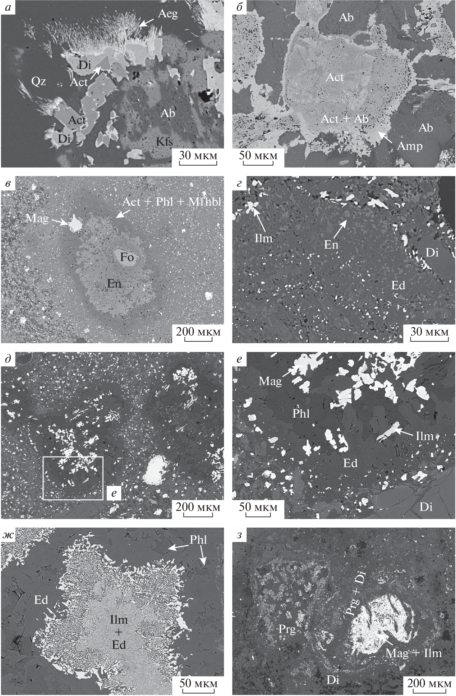 On the base of published data and results of original researches, there were revealed 21 mineral species of the amphibole supergroup minerals in the Lovozero alkaline massif (Kola peninsula, Russia). Among them, 11 species belong to sodium amphiboles, 4 species are sodium-calcium amphiboles and 6 species – calcium ones. Sodium amphiboles are widely present in alkaline rocks of all complexes in the Lovozero massif – layered, eudialyte, and poikilitic complexes, in pegmatites and hydrothermal veins, as well as in roof xenoliths of volcanoclastic rocks of the trap formation. Magnesio-arfvedsonite is the most widespread sodium amphibole, often it is the rock-forming and the main melanocratic mineral. Sodium-calcium amphiboles are found in the poikilitic complex and in xenoliths of volcanoclastic rocks. Calcium amphiboles occur only in xenoliths of volcanoclastic rocks altered metamorphically or metasomatically in different degree. There are analyzed morphology, chemical composition, isomorphic replacements and paragenetic associations of amphiboles in the Lovozero massif, their belonging to different types and complexes of rocks, and their abundance. The critical review of previously published data on amphiboles in the Lovozero massif is given according to the present nomenclature of the amphibole supergroup minerals.