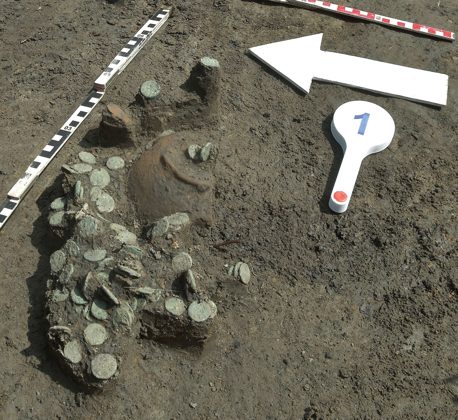 The paper presents a hoard of the early third-century BC Panticapaeum bronze coins, found during excavations at the Maeotian settlement of Tikhovsky 1, Krasnoarmeisky district of Krasnodar Territory, in 2021. The hoard contains 152 coins with “Pan / lion head, below sturgeon” bearing countermarks of a star and a bowcase. In the interfluve of the Kuban, Protoka and Angelinsky Erik, a group of Maeotian settlements is located, which is associated with a pattern of similar coin hoards concealed at the turn of the 4th and 3rd centuries BC. These hoards indicate the easternmost border of the Bosporan kingdom and localize the Maeotian territories annexed during the Bosporan expansion to the east.