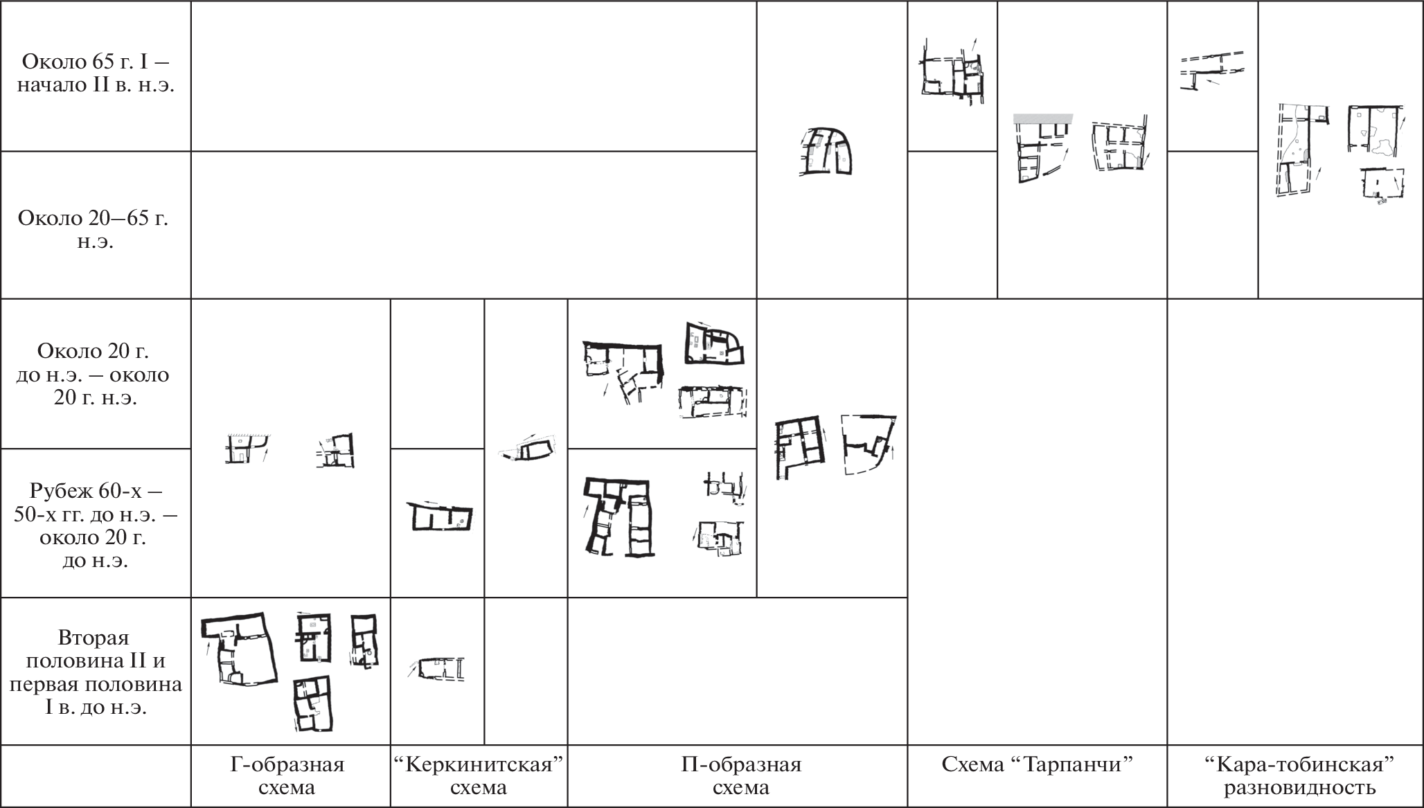 Статья подводит итог исследованию планировок домов, строившихся на северо-западном побережье Крыма в последней четверти II в. до н.э. – начале II в. н.э. Особое внимание уделяется изменению основных планировочных схем, а также поиску их аналогий. Анализируются 28 планировок наиболее хорошо сохранившихся позднескифских домов. Все они многокамерные, большинство – с внутренними дворами. Основные планировочные схемы отличаются расположением помещений относительно двора. Удается установить время преобладания определенных схем. Планировки позднескифских домов Северо-Западного Крыма усложняются со временем. Однако помимо “внутренней эволюции” домостроительство испытывает и сильное античное влияние, которое проявляется на разных этапах. Прослеживается также связь с другими регионами Крымской Скифии.