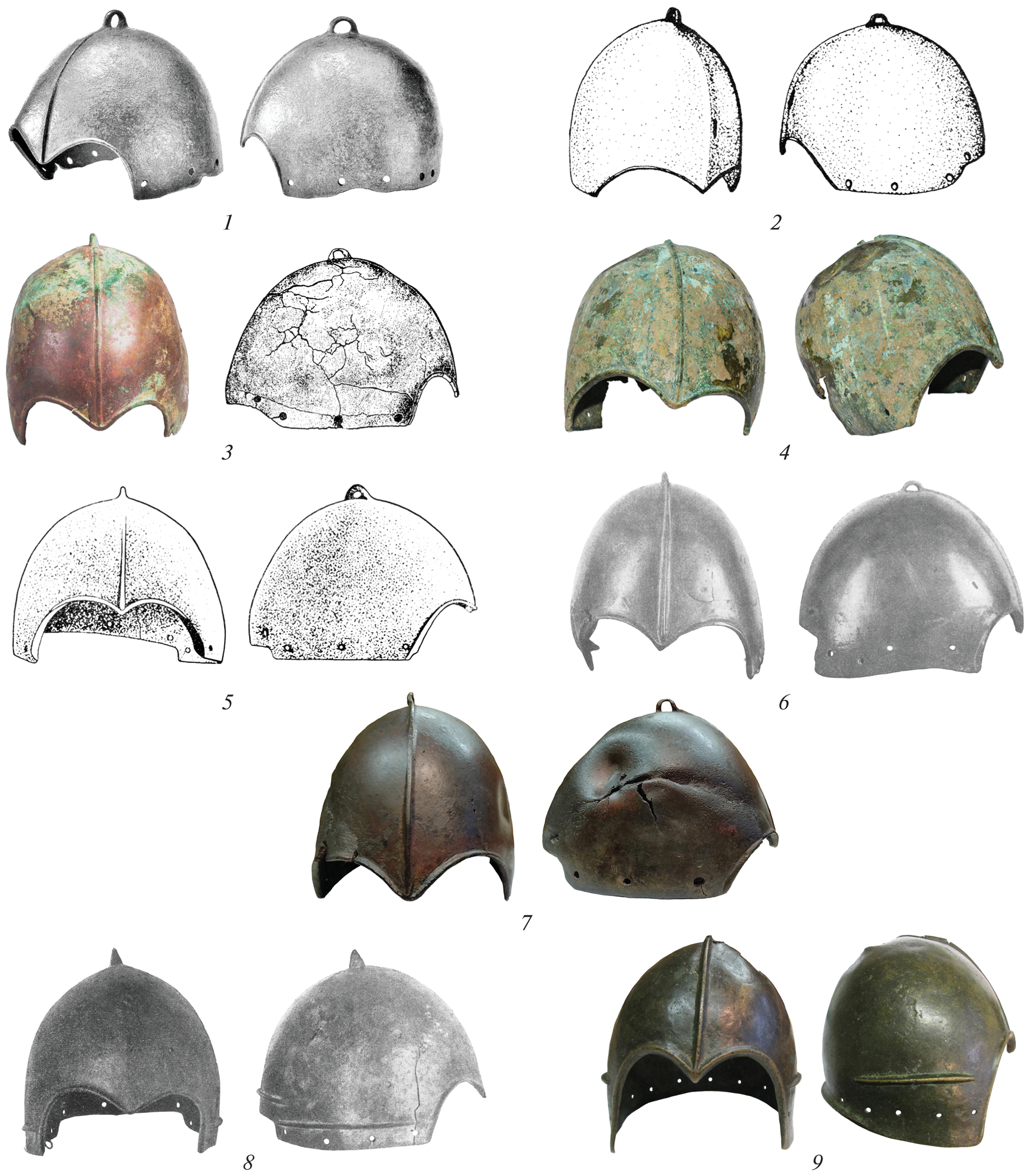 В статье публикуется находка нового литого шлема “кубанского типа” раннескифской культуры. Шлем рассматривается на фоне других подобных литых шлемов с территории Восточной Европы, датируемых VII–VI вв. до н.э. Рассматривается концепция о происхождении литых шлемов Восточной Европы от прототипов эпохи Чжоу из Северного Китая. Особое внимание уделяется типологическому сходству и отличию восточноевропейских экземпляров от подобных находок из Средней и Восточной Азии. Предлагается вариант реконструкции технологического процесса изготовления литейной формы и отливки изделия. Проводится сравнительная характеристика результатов рентгено-флуоресцентного анализа металла публикуемого шлема с данными о других известных находках шлемов кубанского типа, что показывает разнообразие состава металла, из которого они изготовлены.