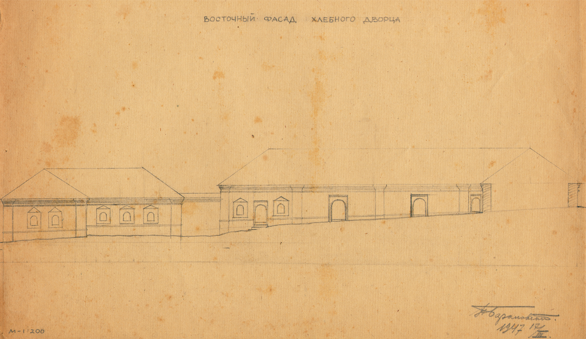 - Gosudarstvennyy nauchno-issledovatel’skiy muzey arkhitektury [State Research Museum of Architecture], OF‑5112/53, L. 24. Kolomenskoe. Spasskie vorota. Kormovoy i Khlebnye dvory. XVII v. [Kolomenskoye. The Spasskye Gate. Food and bread yards. 17th century].