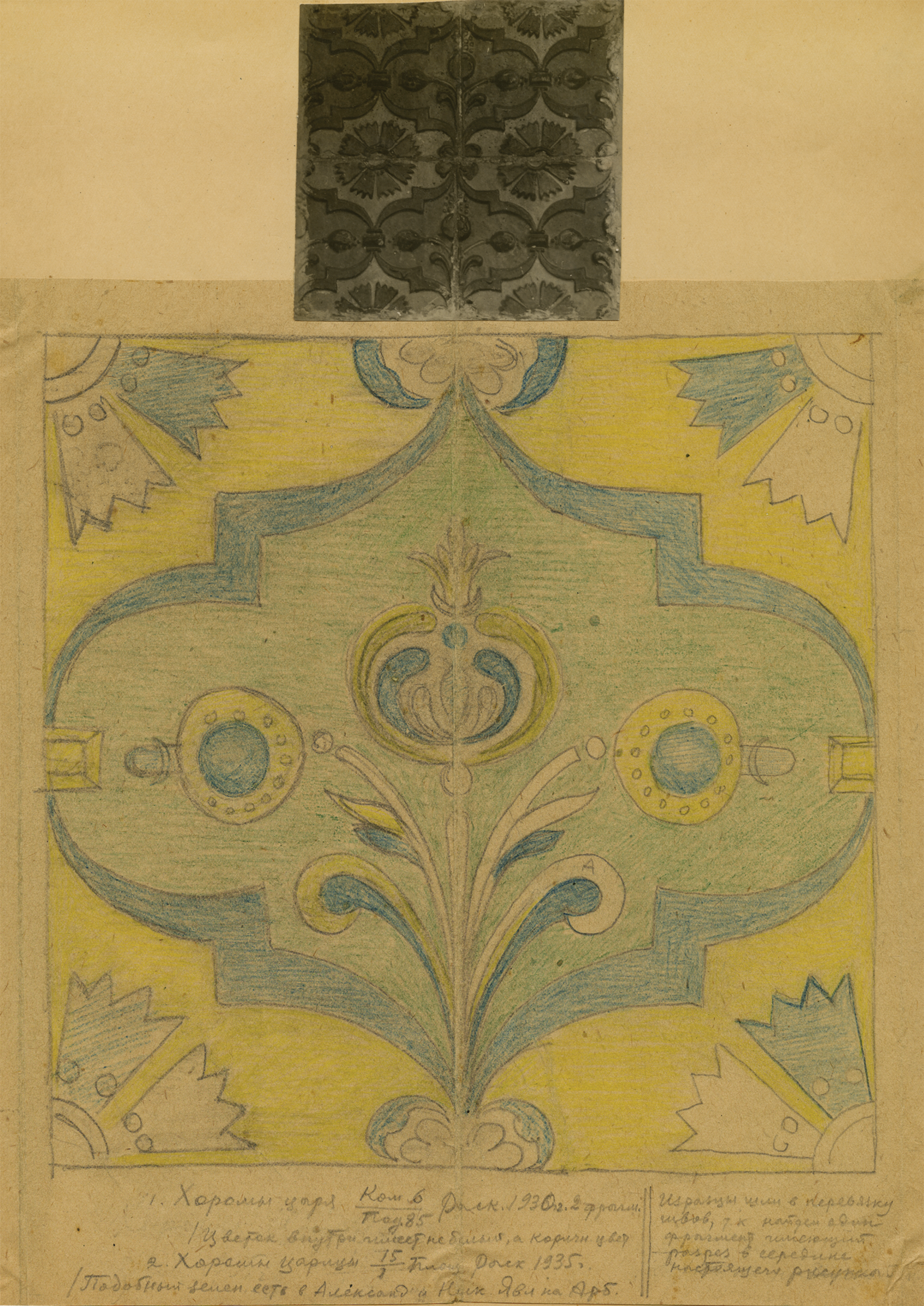 - Gosudarstvennyy nauchno-issledovatel’skiy muzey arkhitektury [State Research Museum of Architecture], OF‑5112/57. Kolomenskoe. Risunki izraztsov [Kolomenskoye. Drawings of tiles].